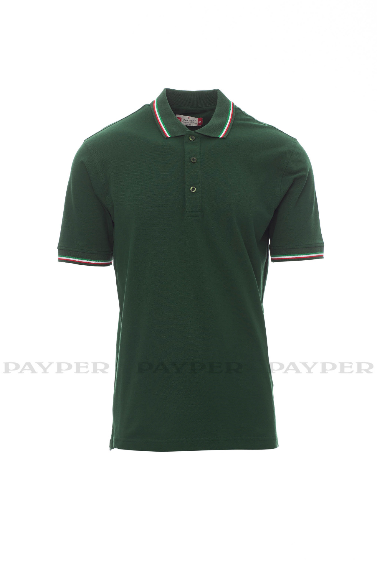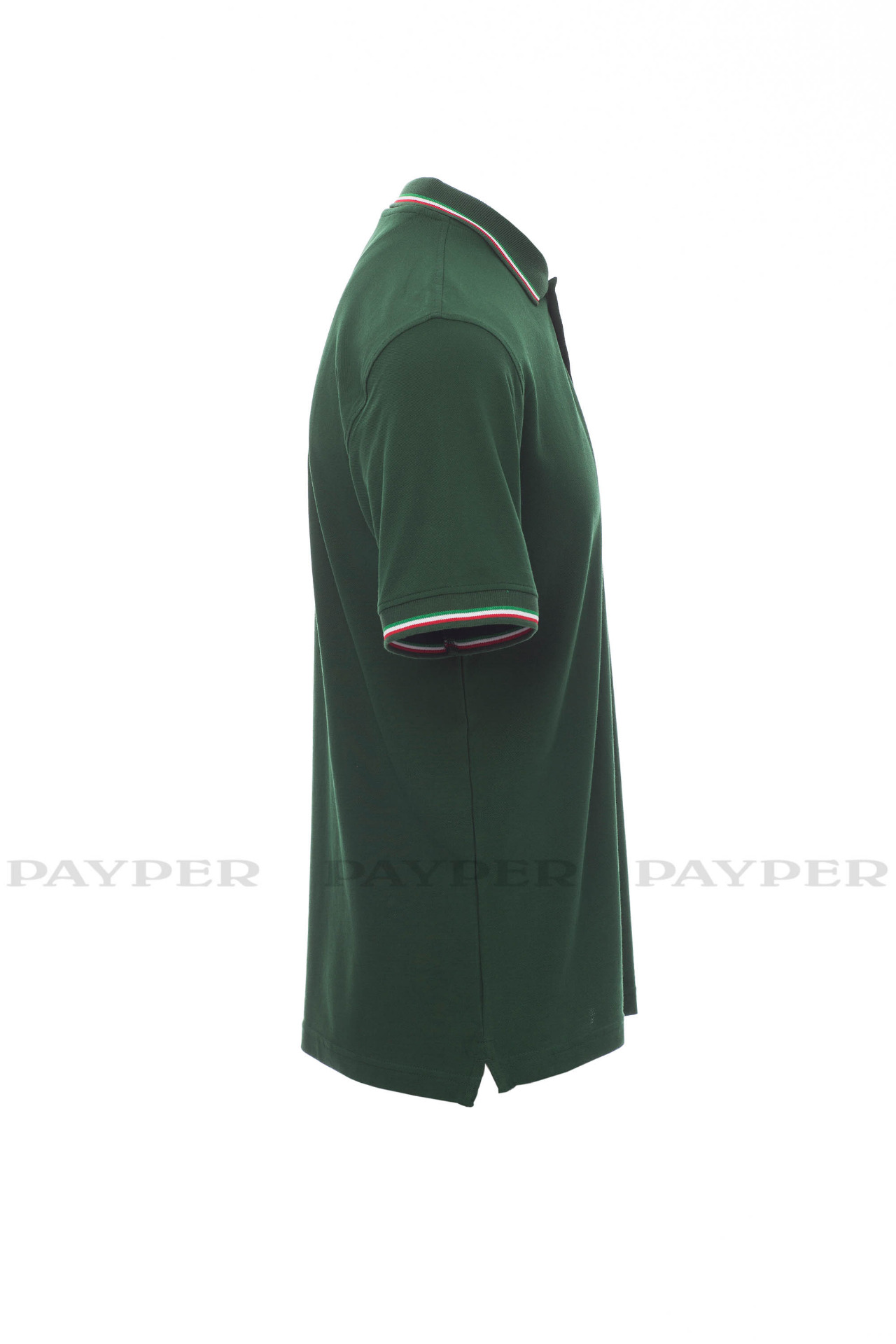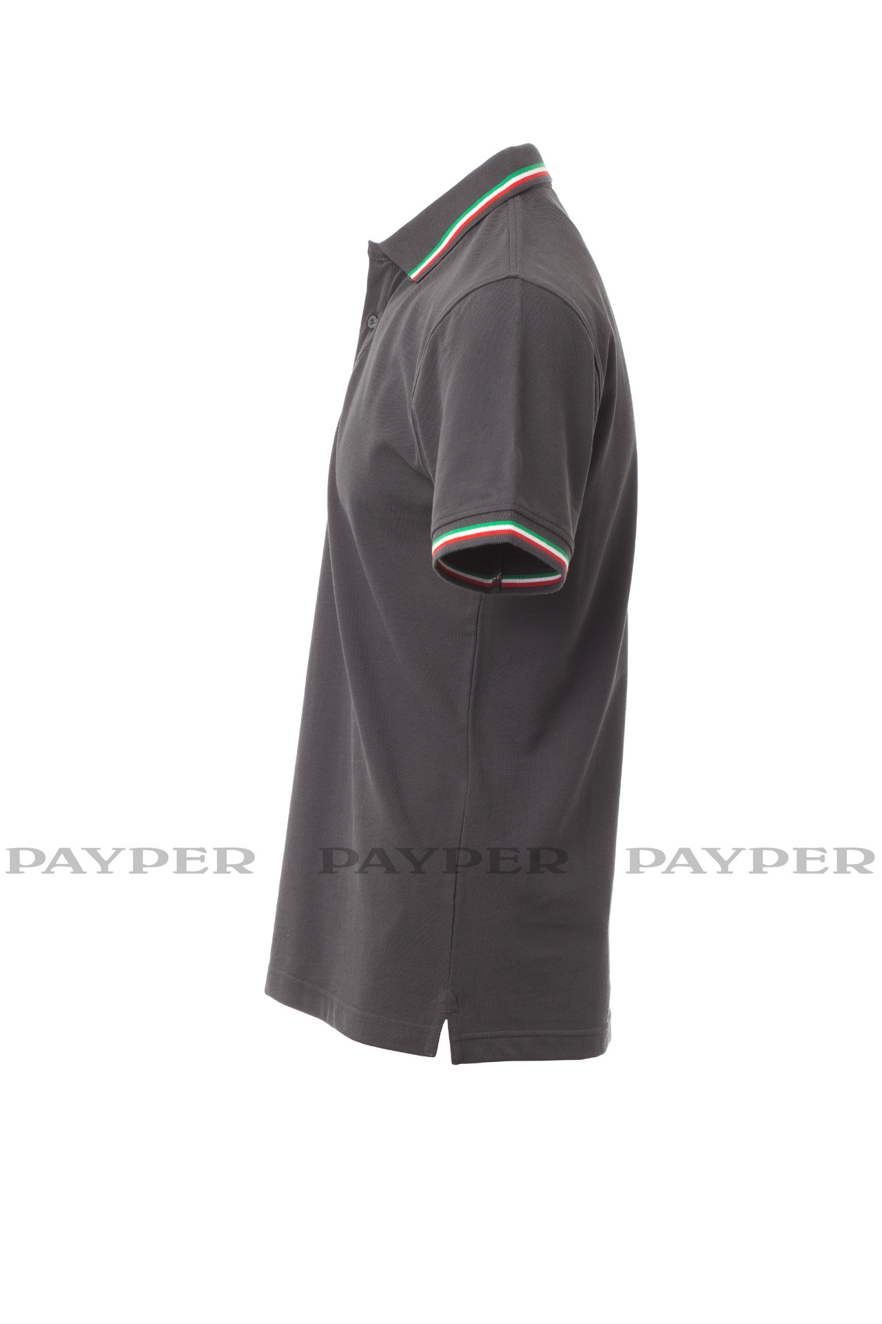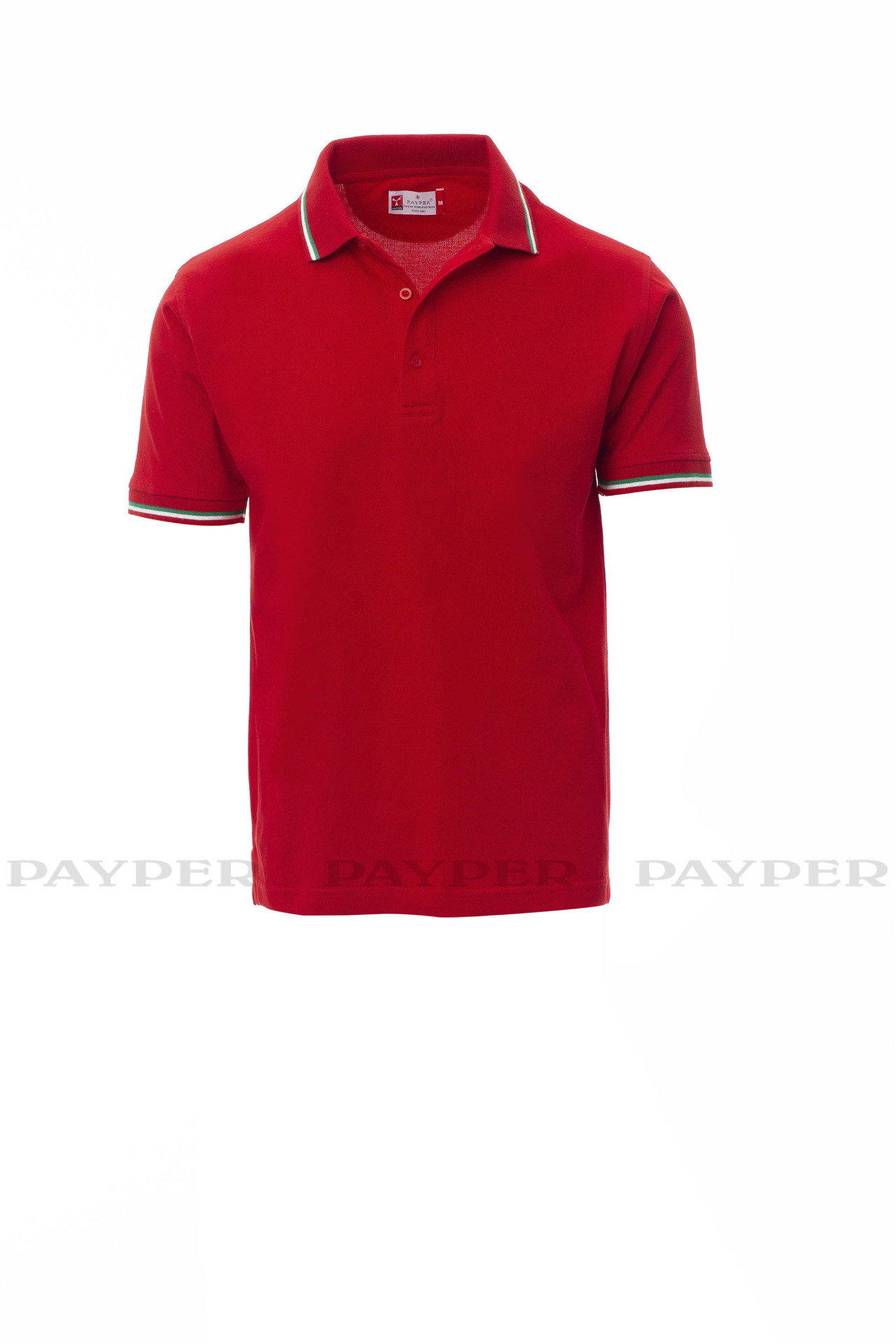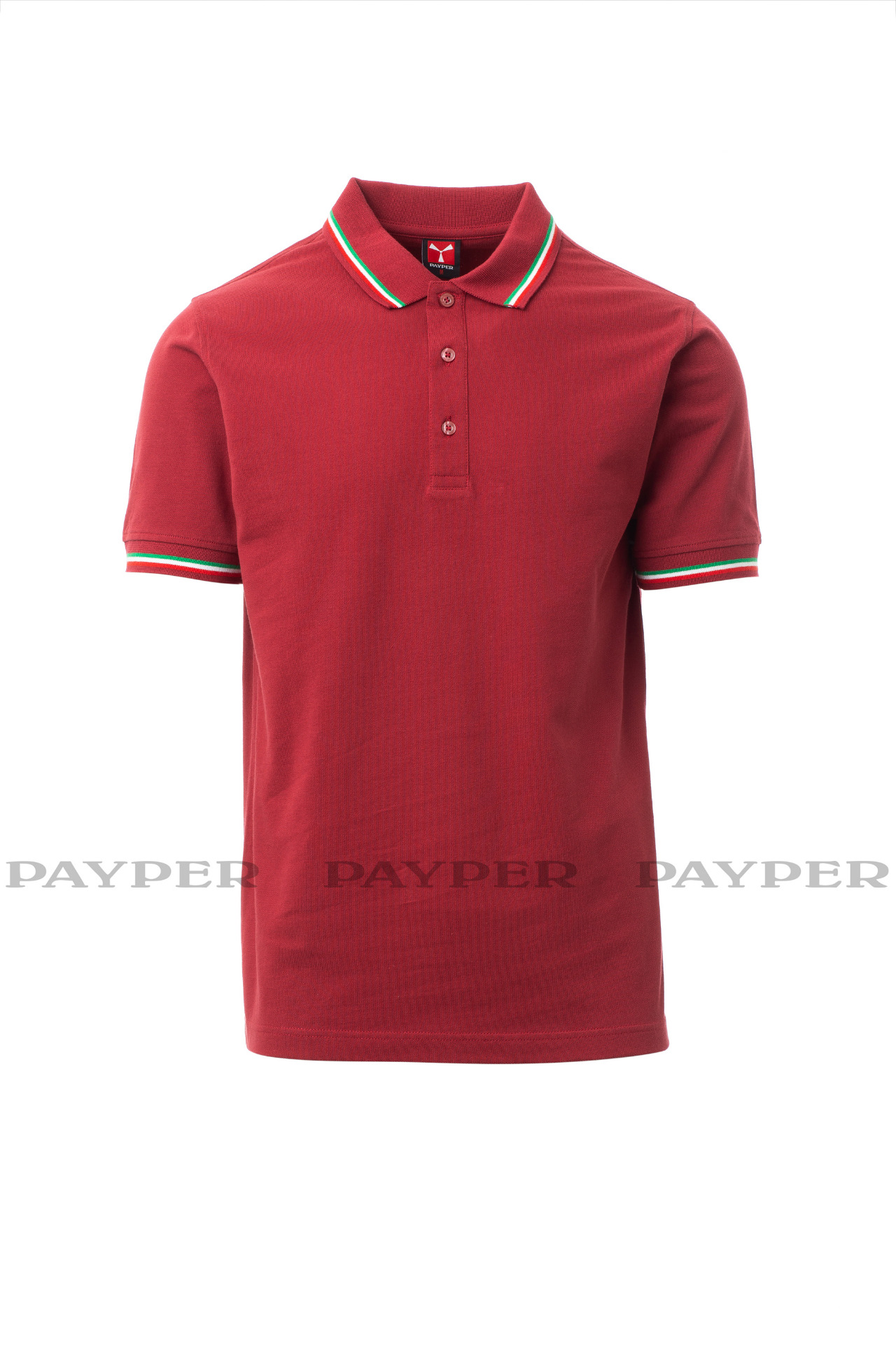 Unisex short-sleeved polo shirt with 3 matching buttons, contrasting
