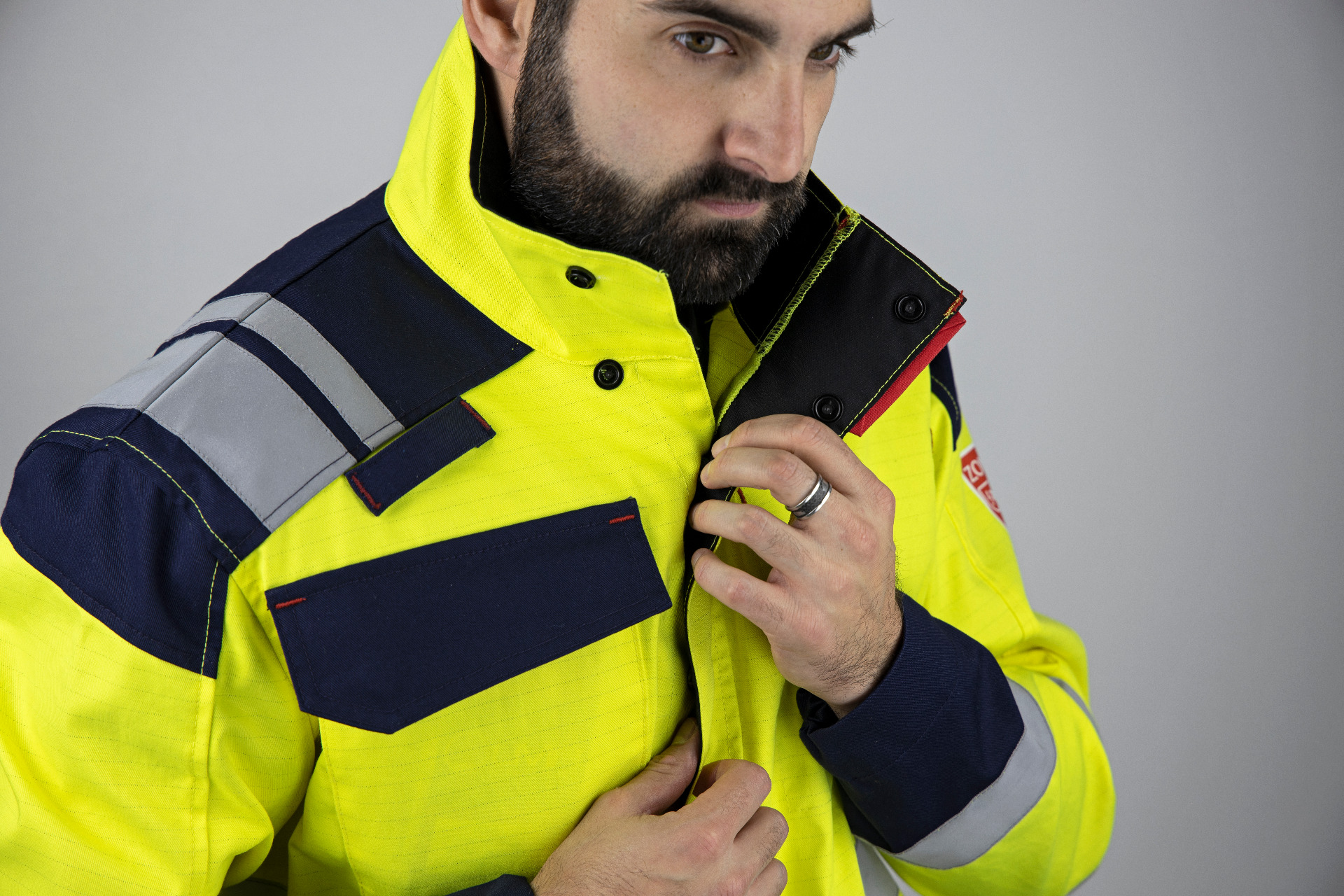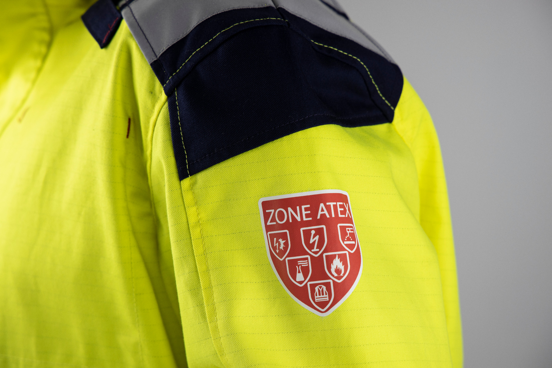 plastic snap - 2 loops for detector - ATEX area transfer on left sleeve - Red contrasted
