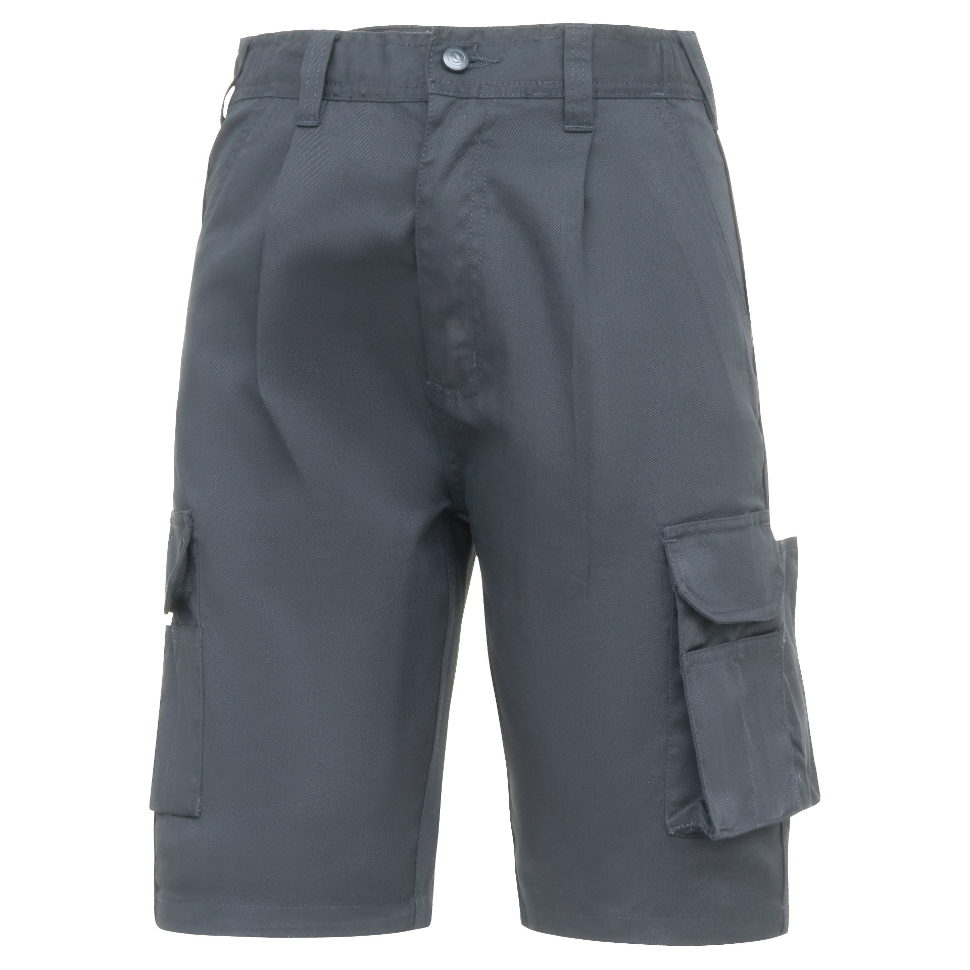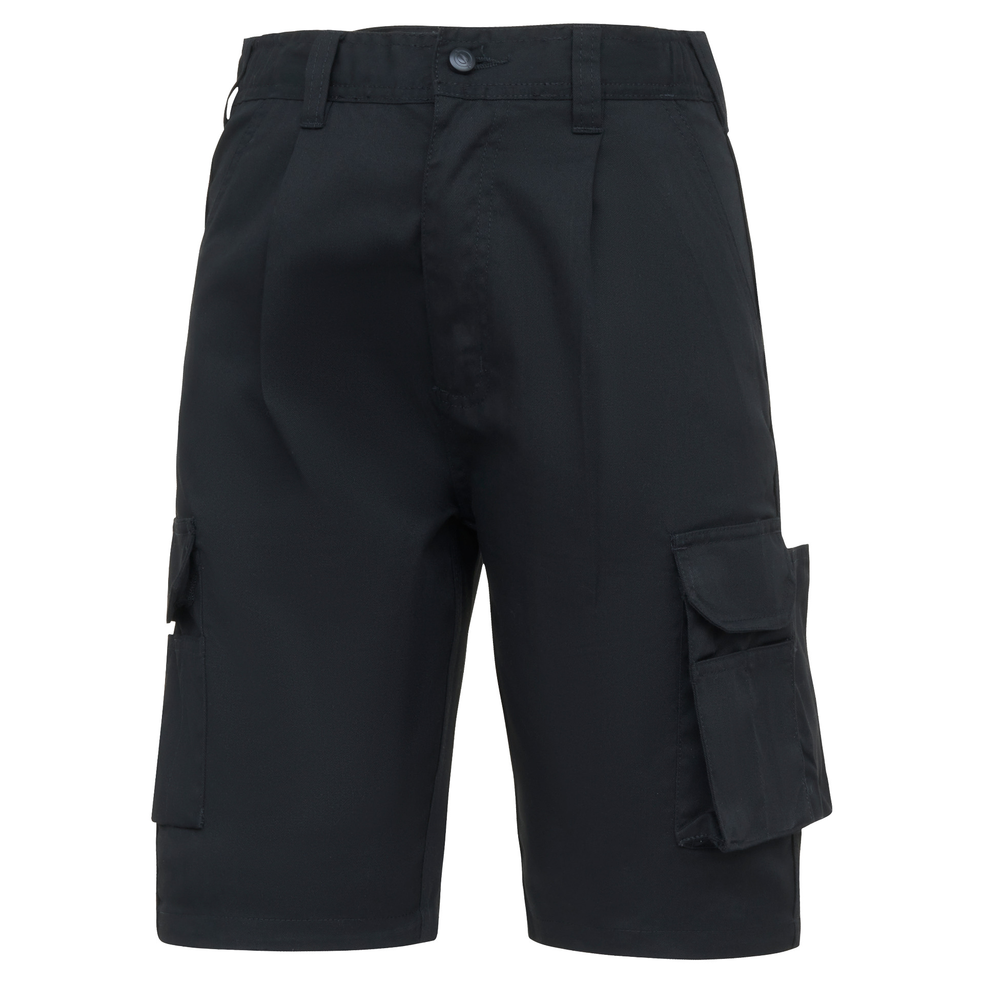 Multi-functional and hard wearing shorts - Part elasticated waistband for comfort - Multiple pockets with extra strong lining including two front and two rear pockets, combat style leg pockets and mobile phone pocket (on thigh) - Heavy duty non-scratch fixing stud on waistband - Triple stitched on all main seams for ultimate strength - High quality brass YKK zip with lifetime guarantee