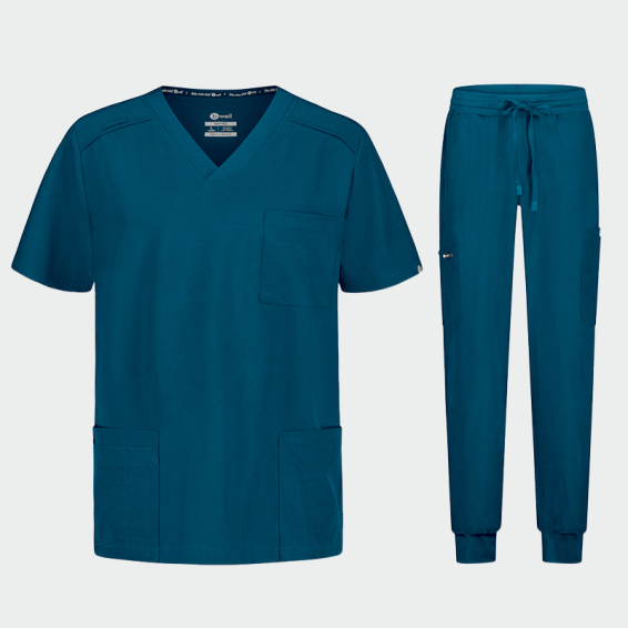MATTEO men's scrub Set consists of a tunic and jogger pants. The set is made of innovative material, a mixture of polyester and elastane, which contribute to its extremely easy maintenance.