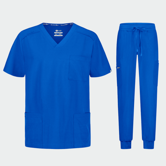 men's scrub Set consists of a tunic and jogger pants. The set is made