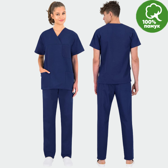 MORELLI medical scrub set is made of 100% certified Oeko-Tex cotton. The b-well scrub set and has integrated CL 40°C technology for color retention when washing. The model is unisex and is also available in dark blue.