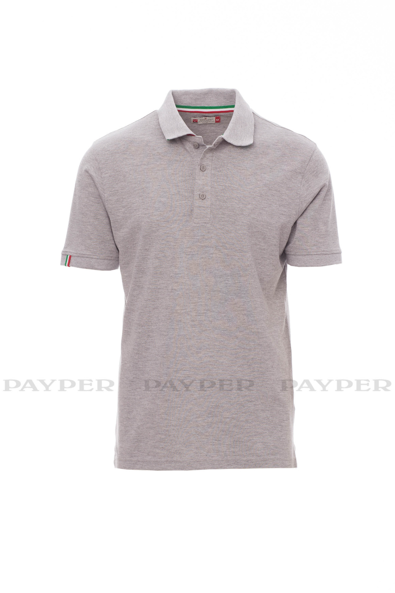 Men's short-sleeved polo shirt with 3, matching, mother-of-pearl effect
