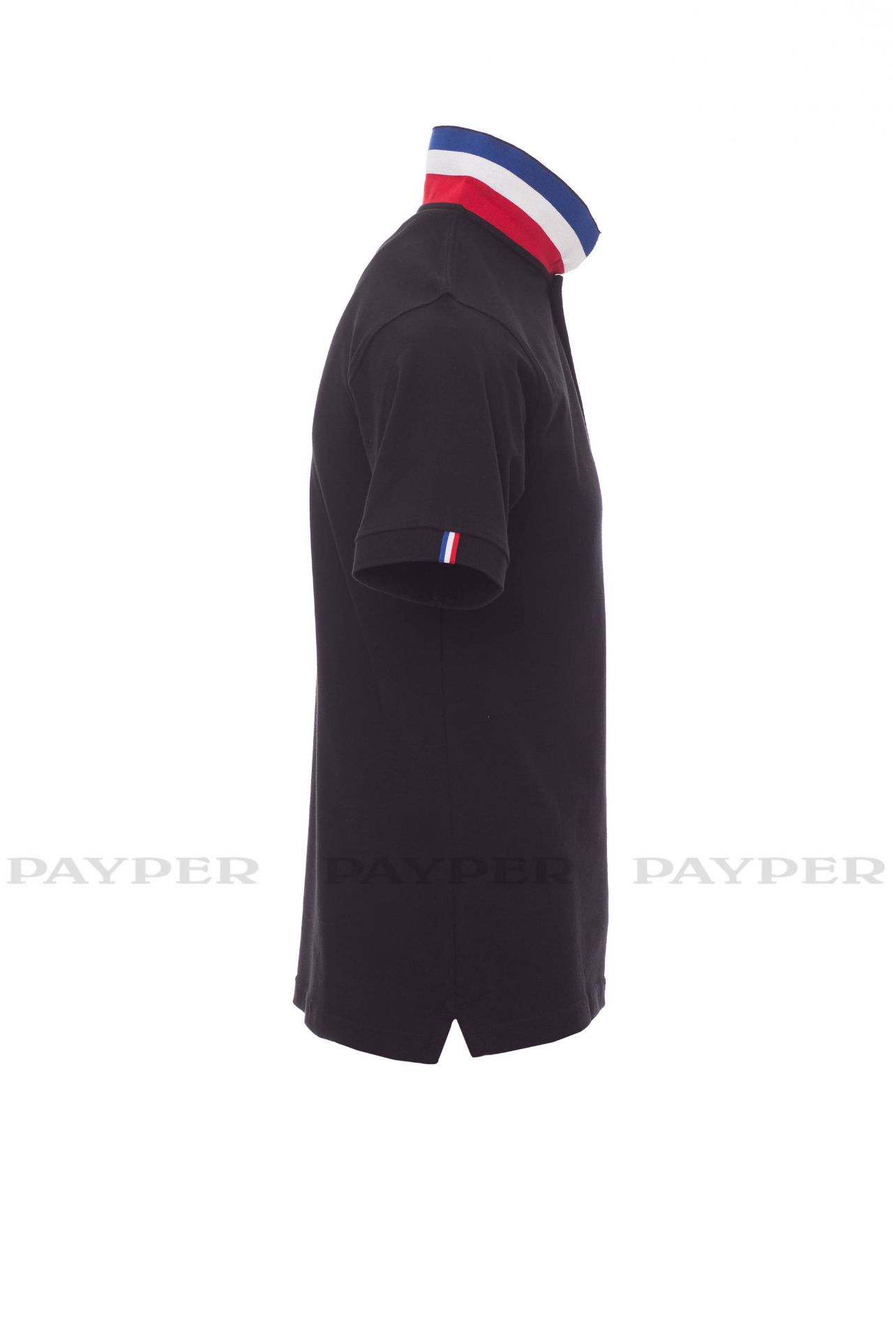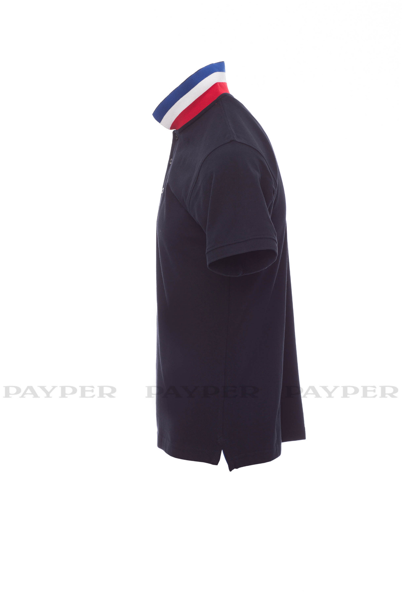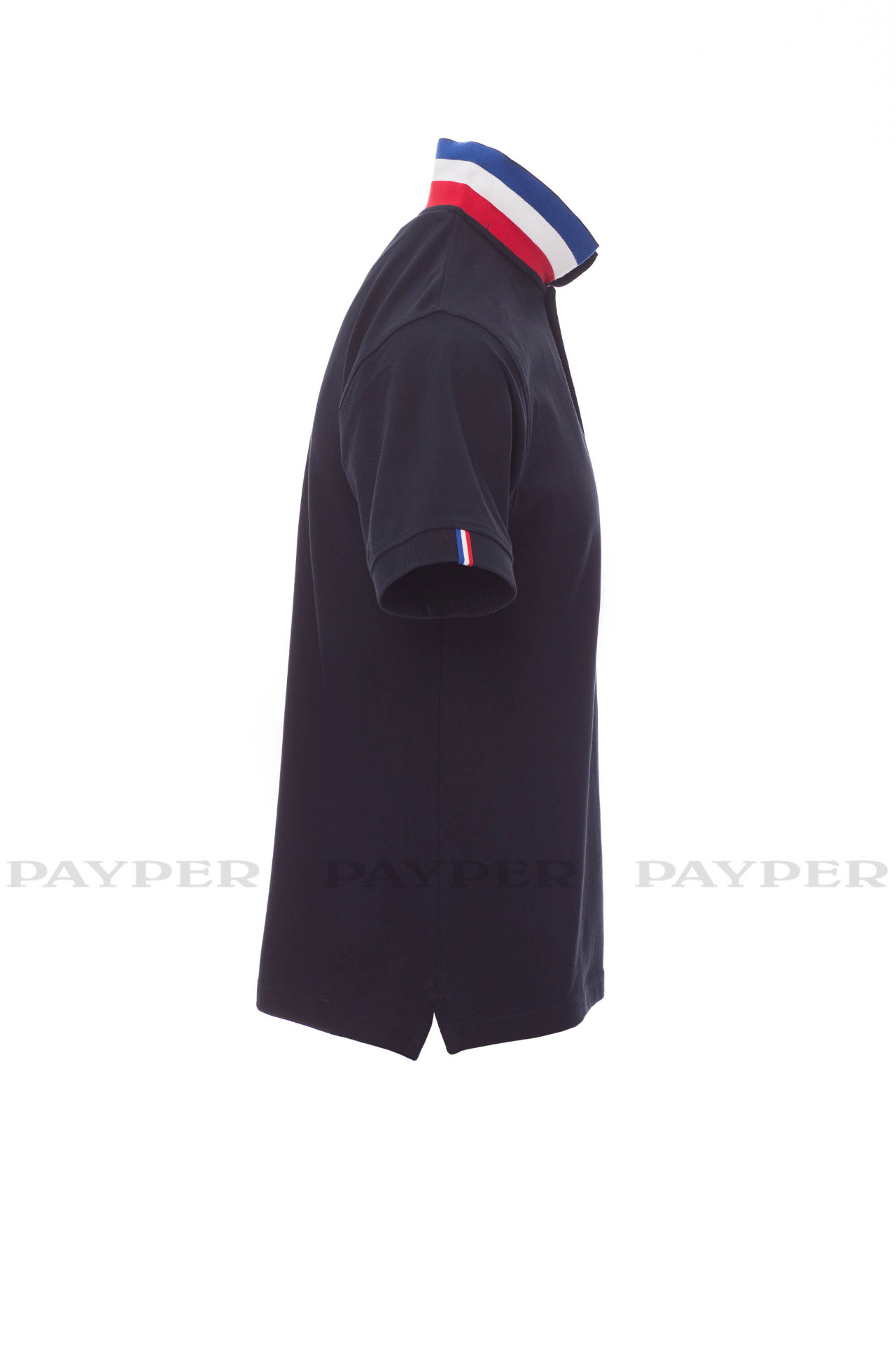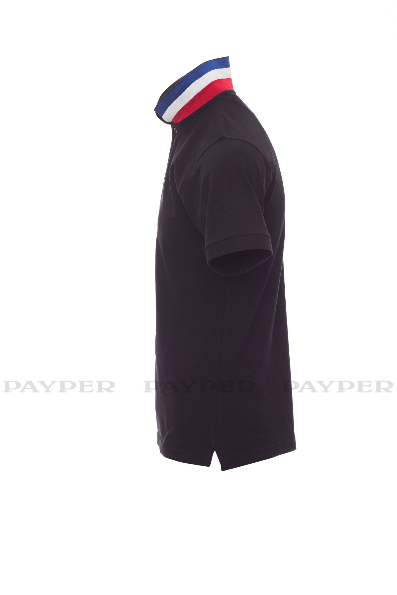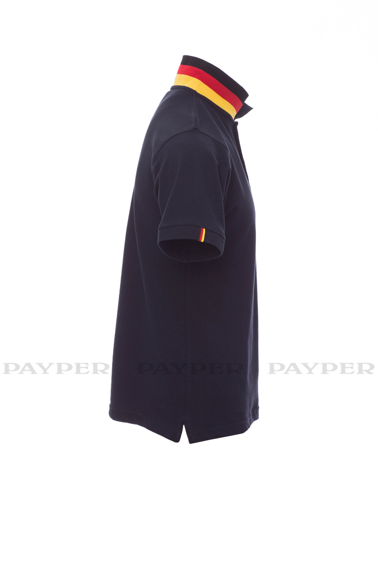 concealed collar stitching with jersey tape (colours of the flag), side