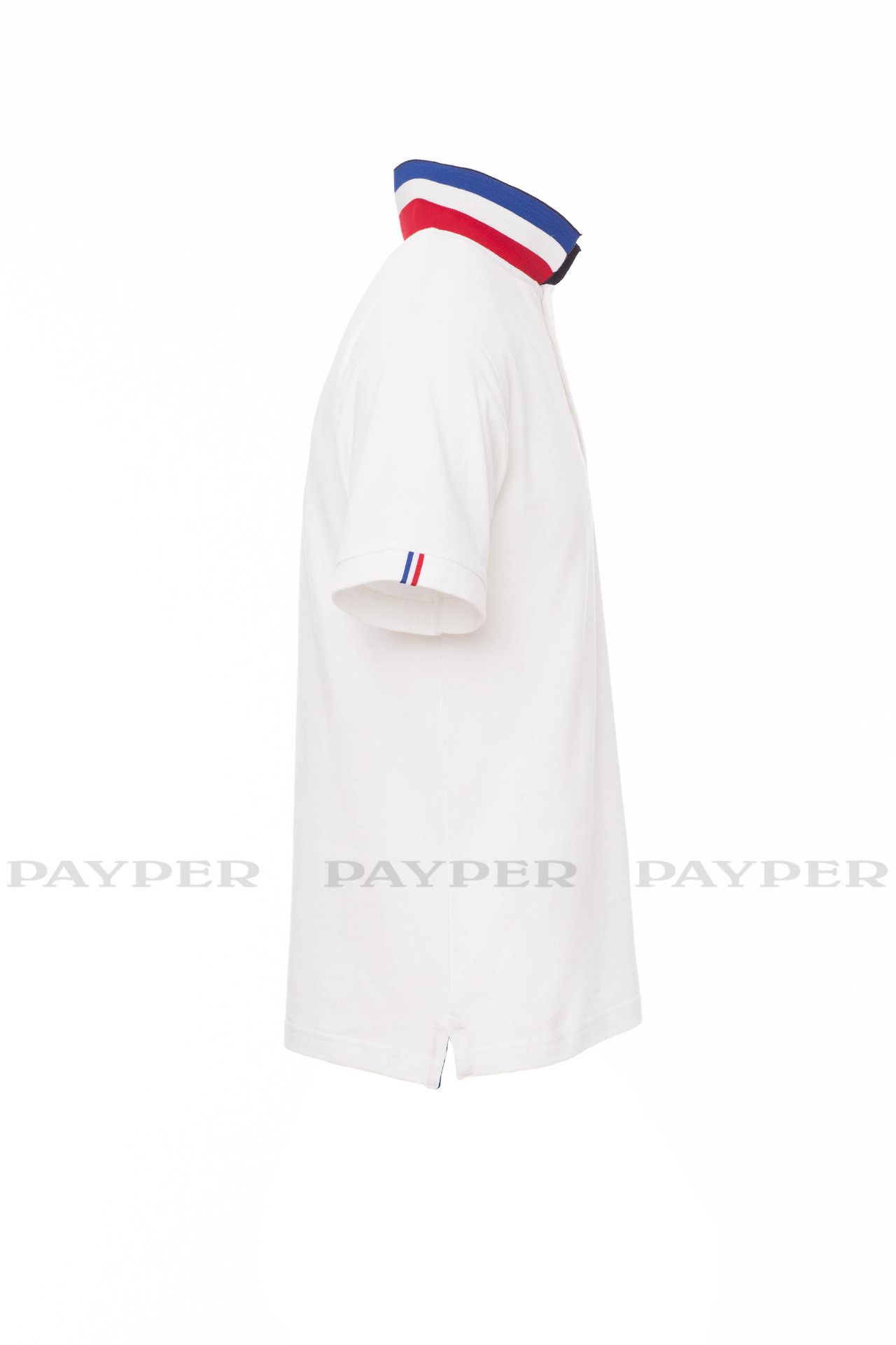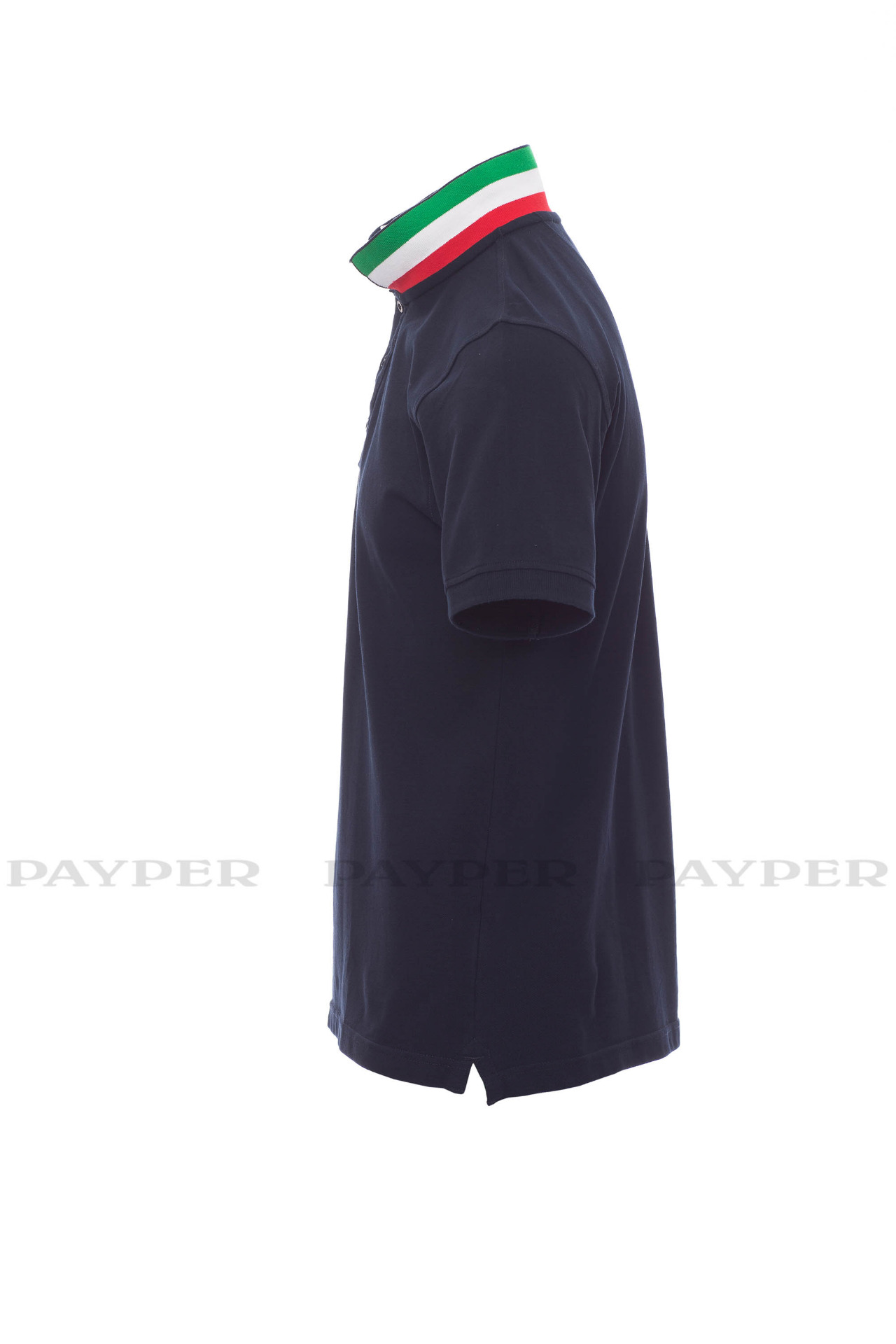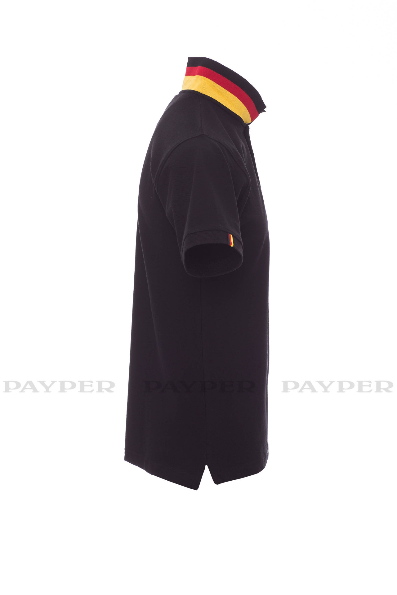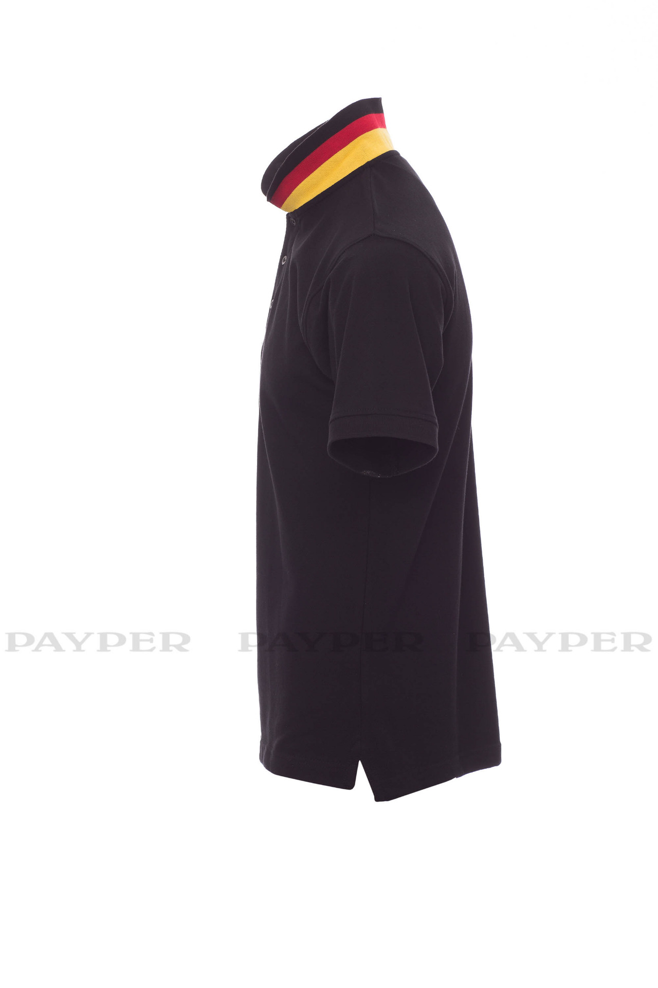 concealed collar stitching with jersey tape (colours of the flag), side