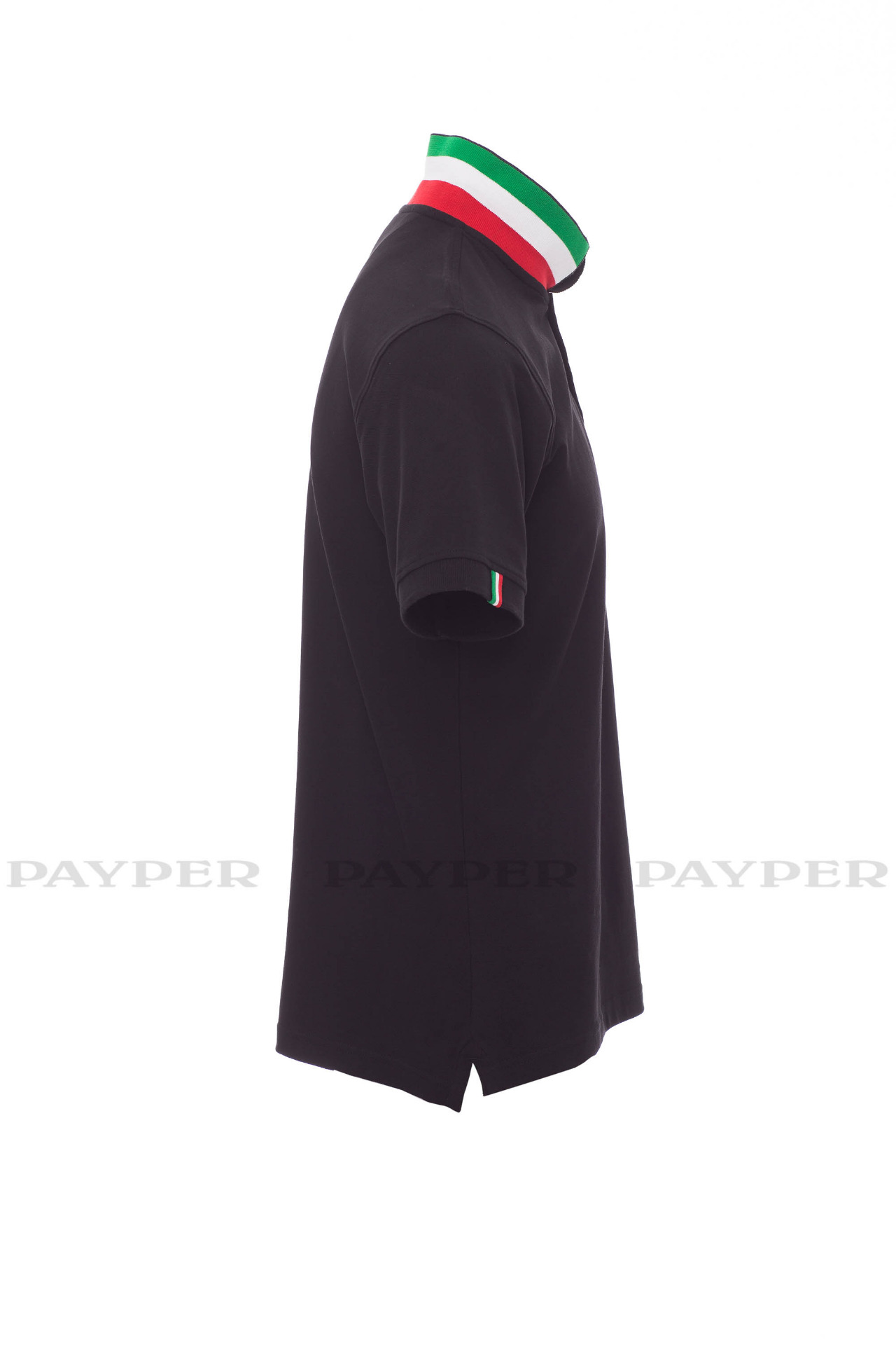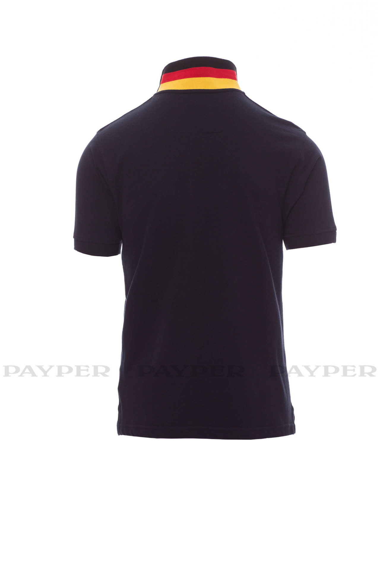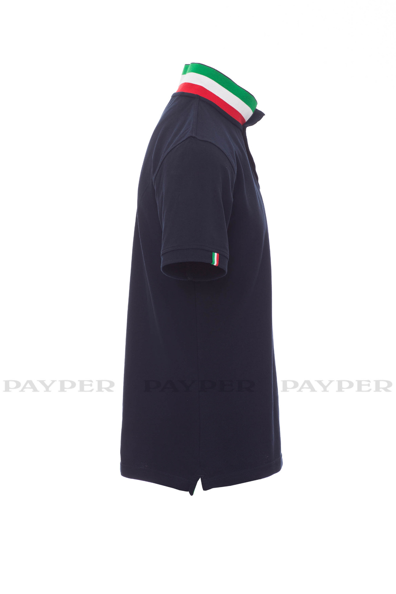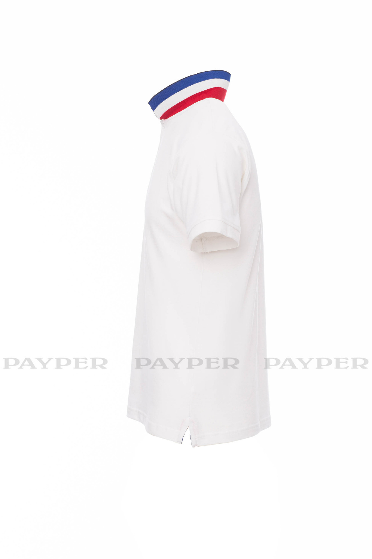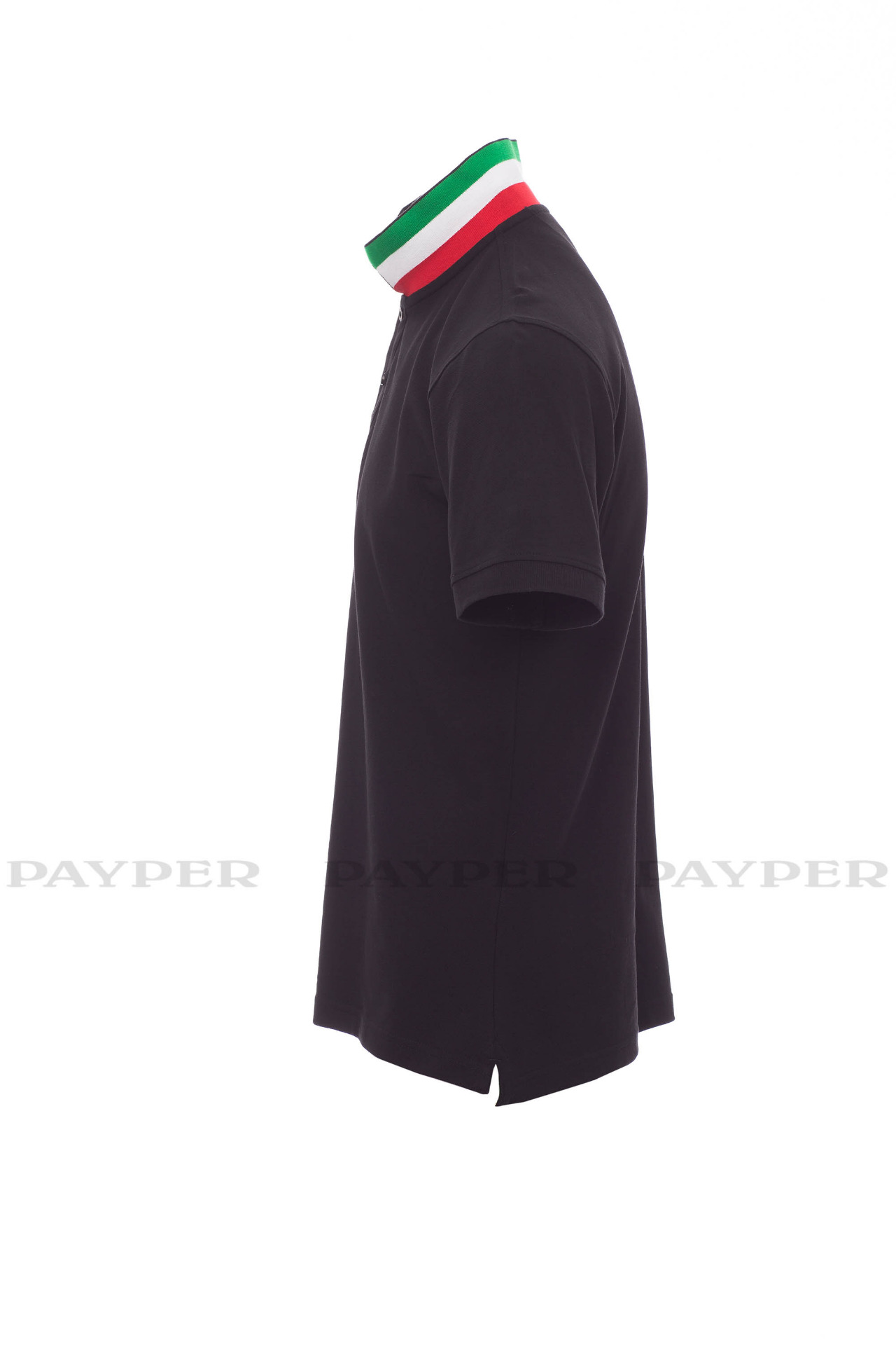 concealed collar stitching with jersey tape (colours of the flag), side