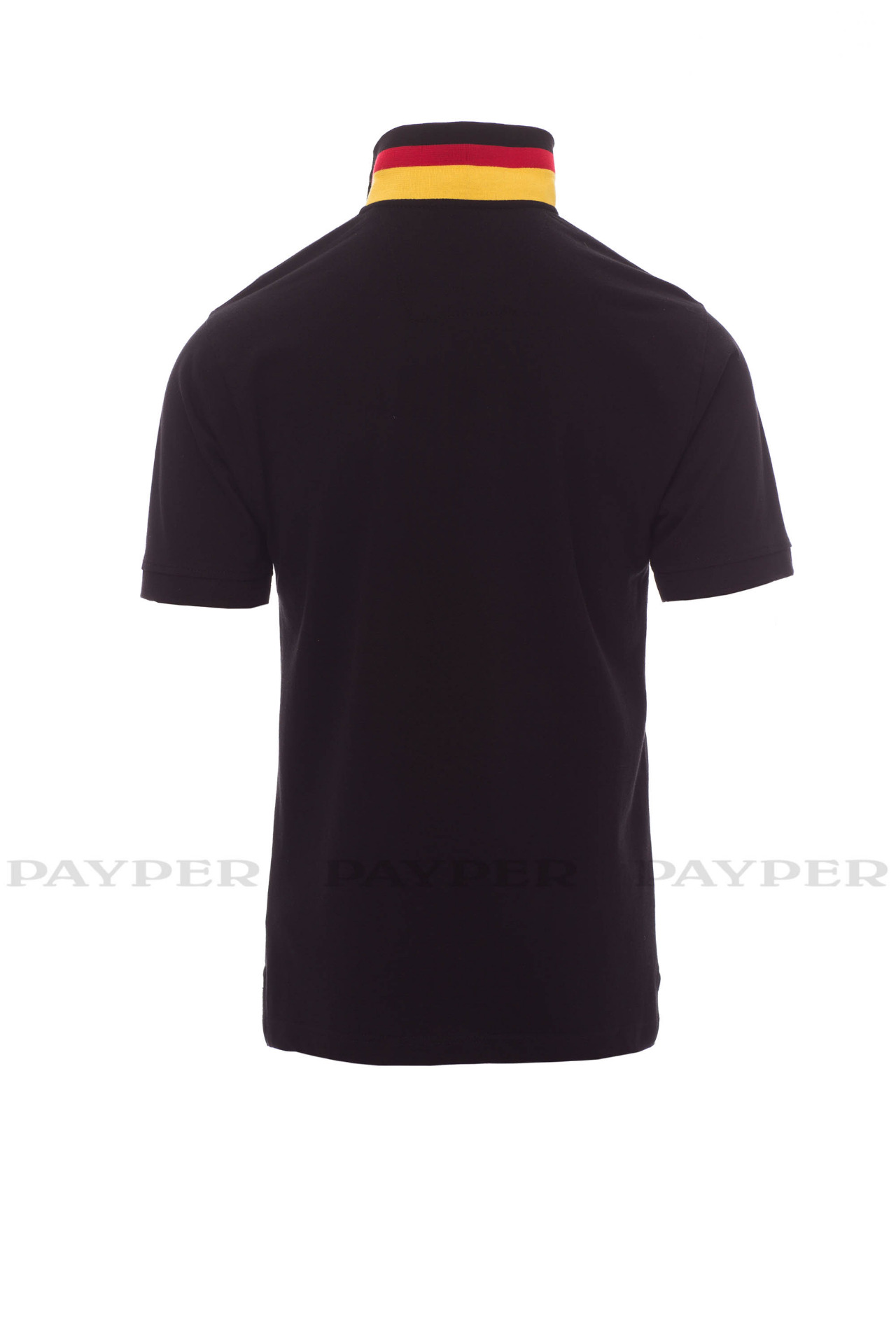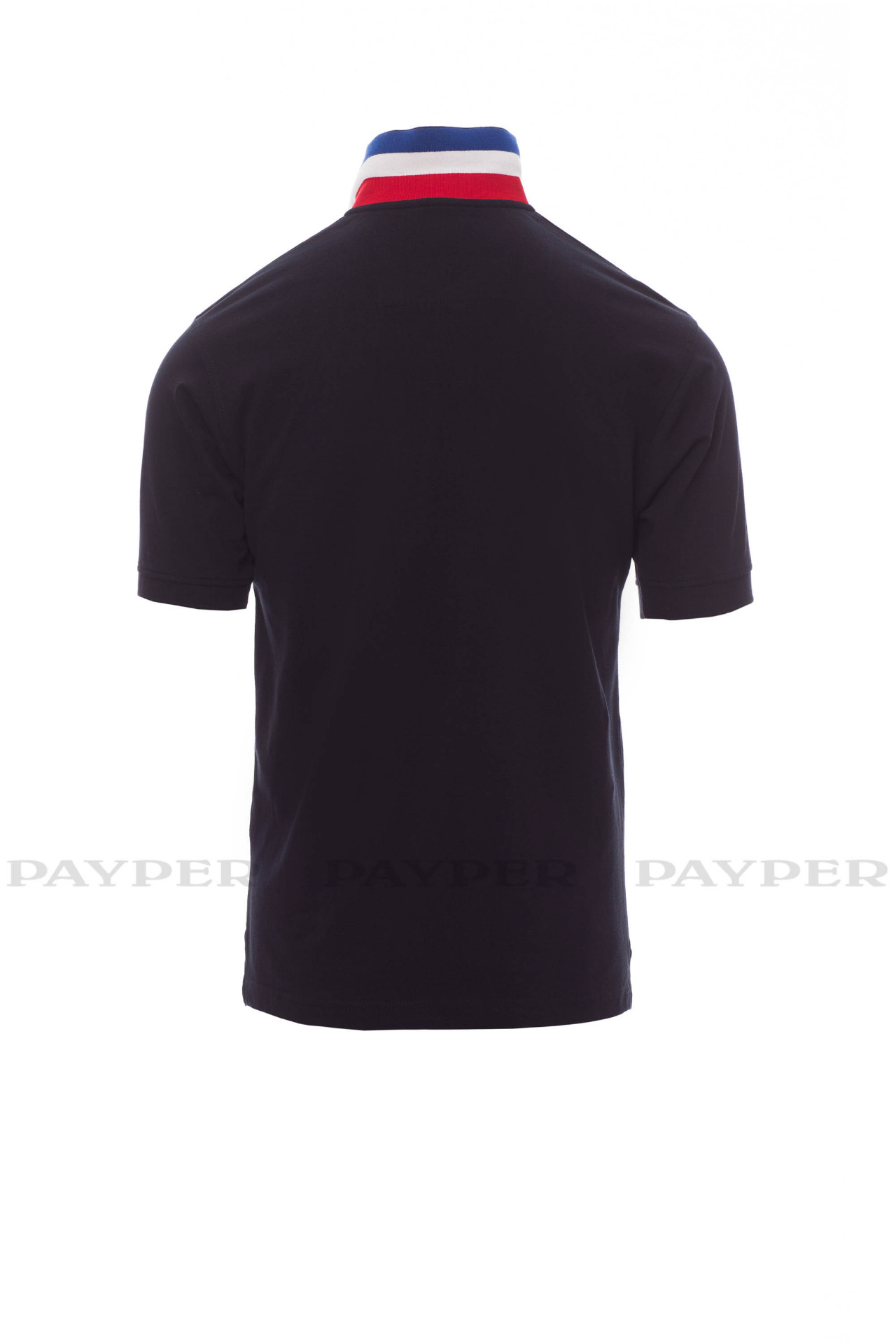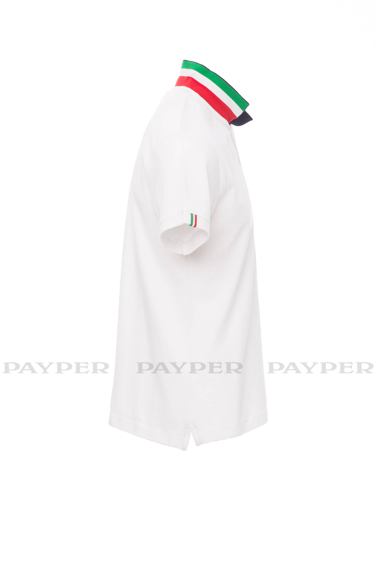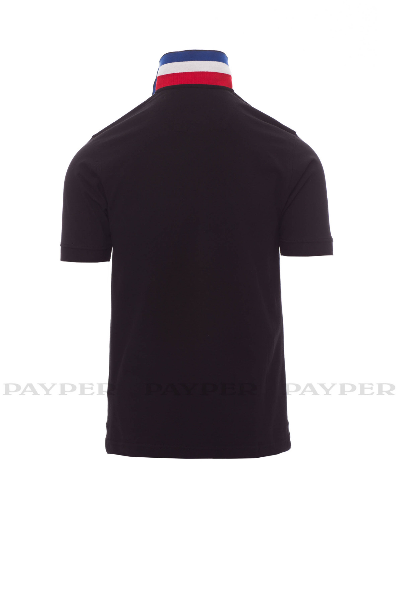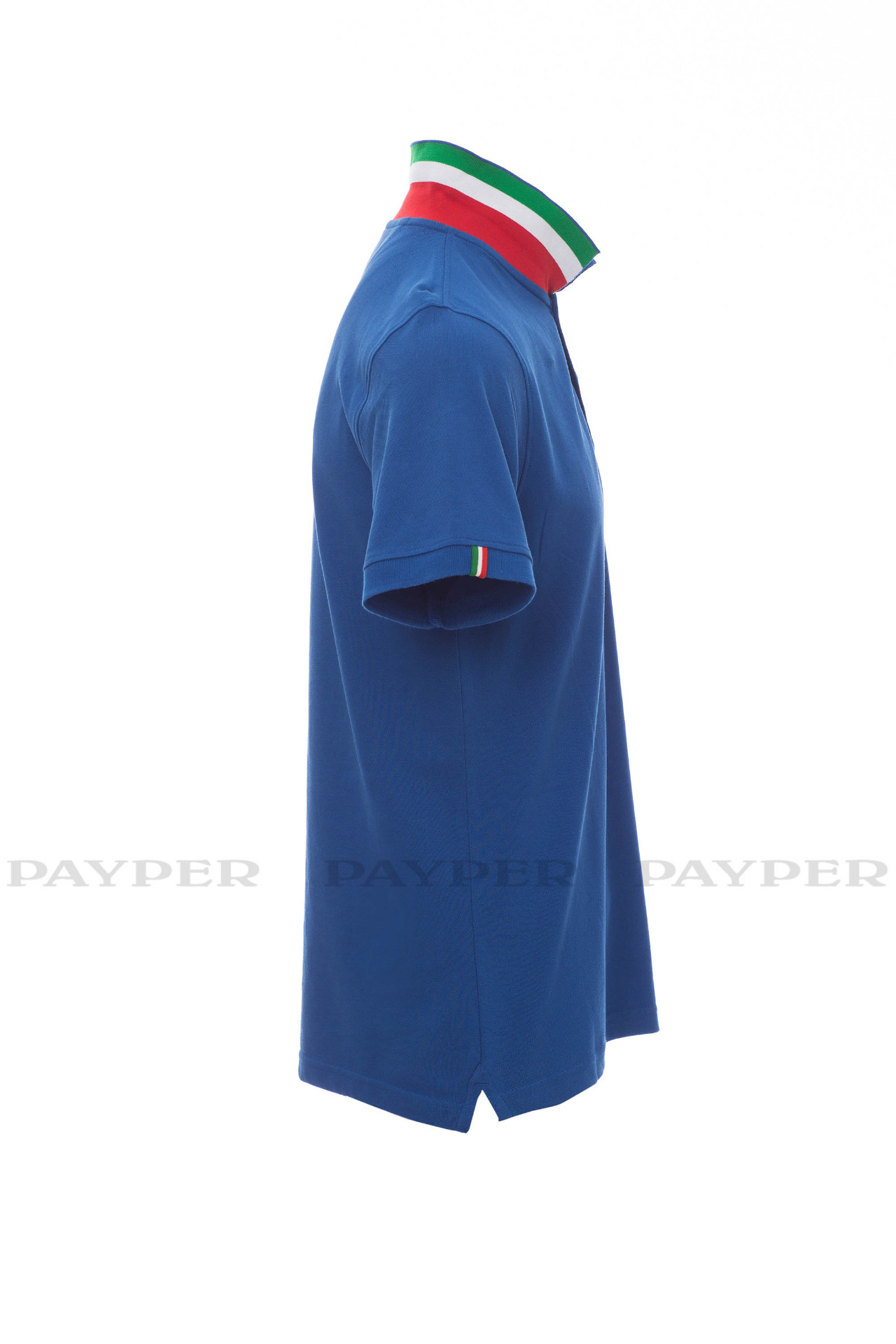 concealed collar stitching with jersey tape (colours of the flag), side
