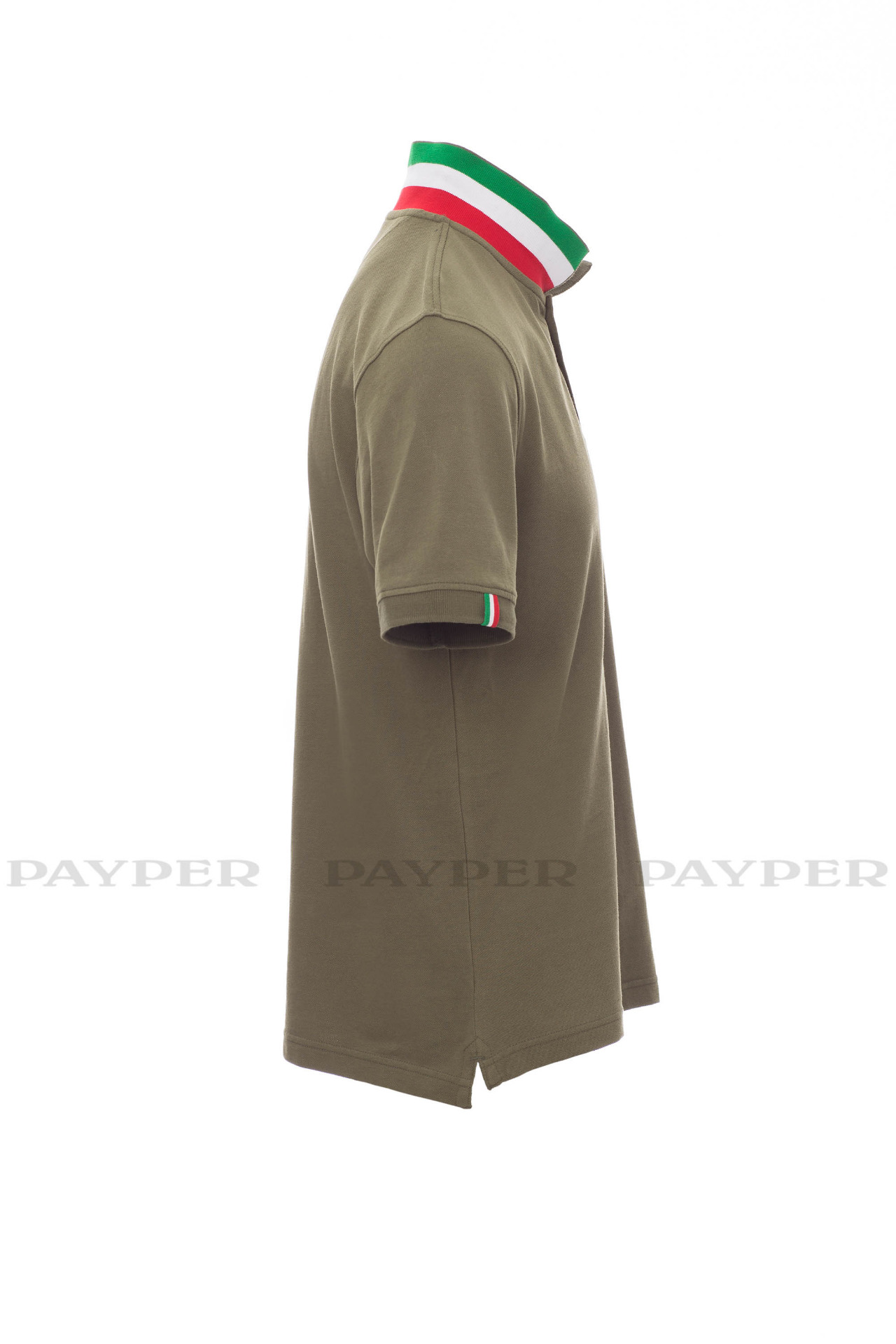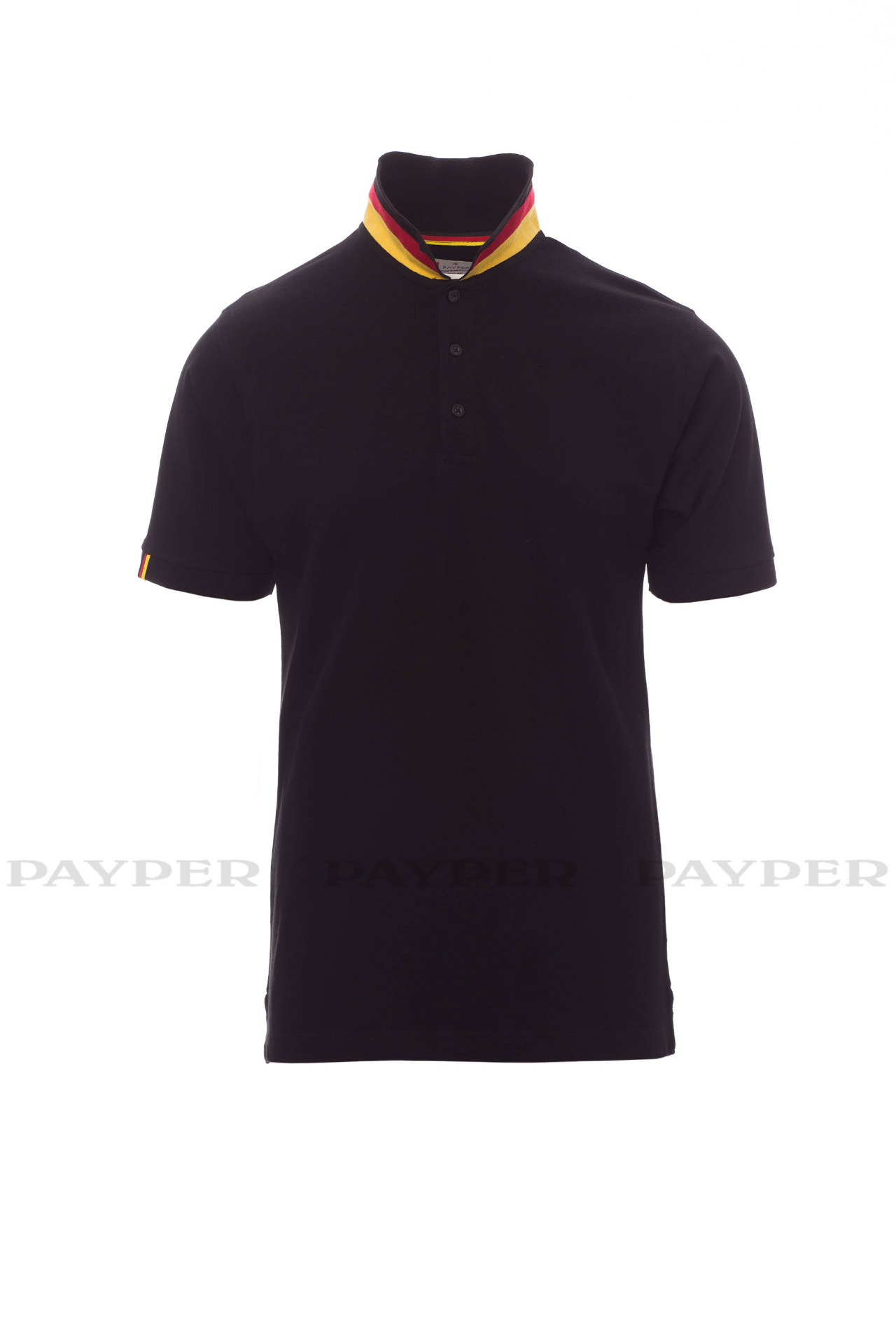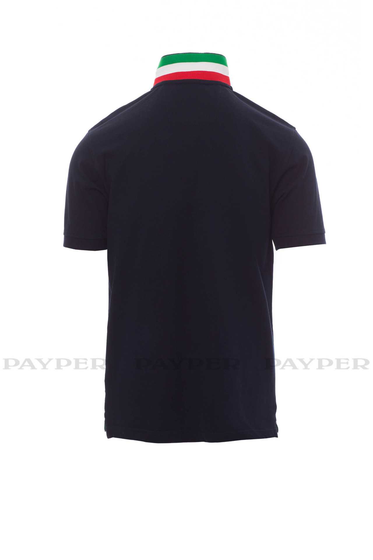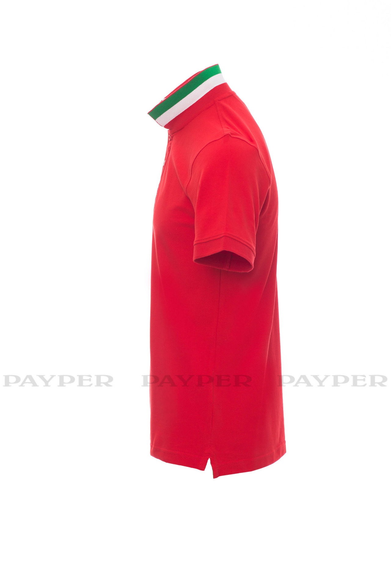 concealed collar stitching with jersey tape (colours of the flag), side