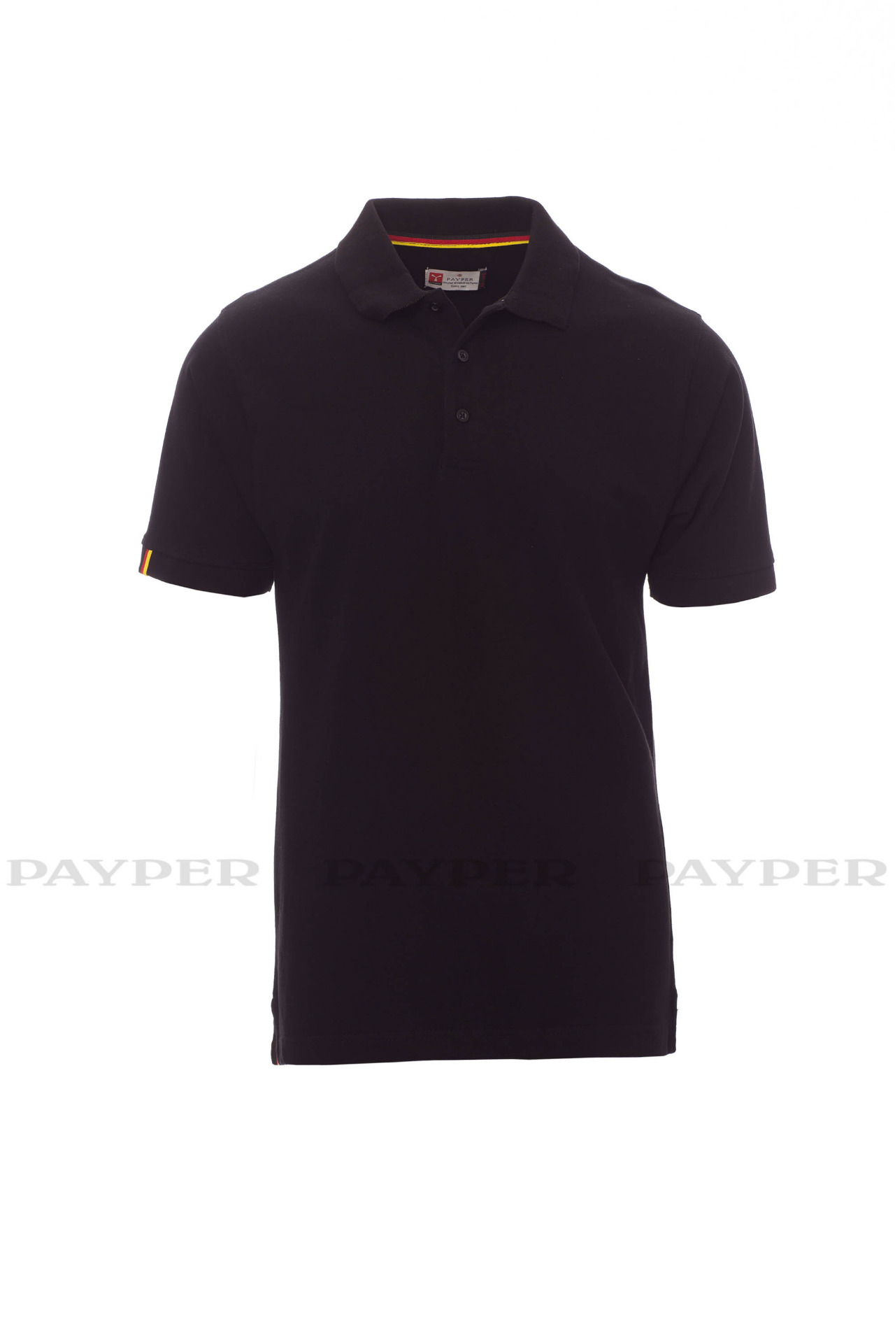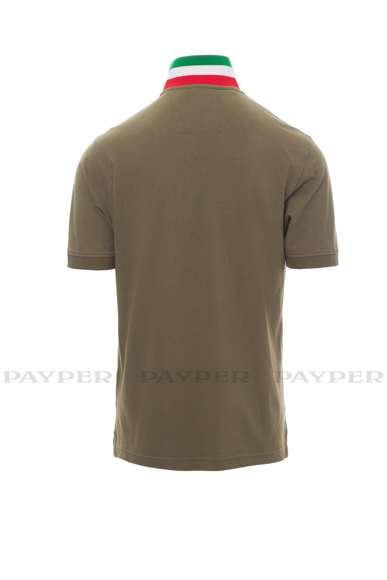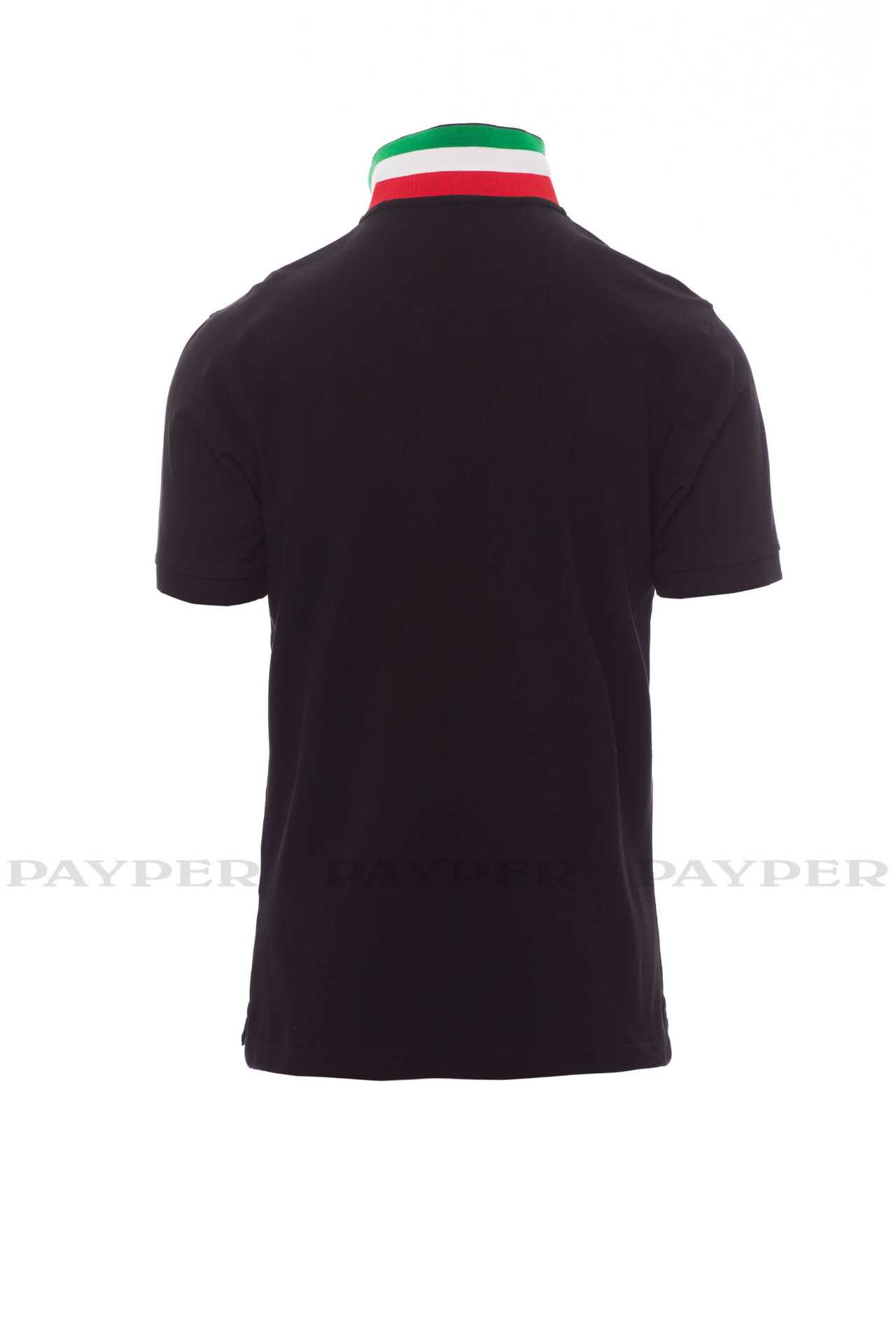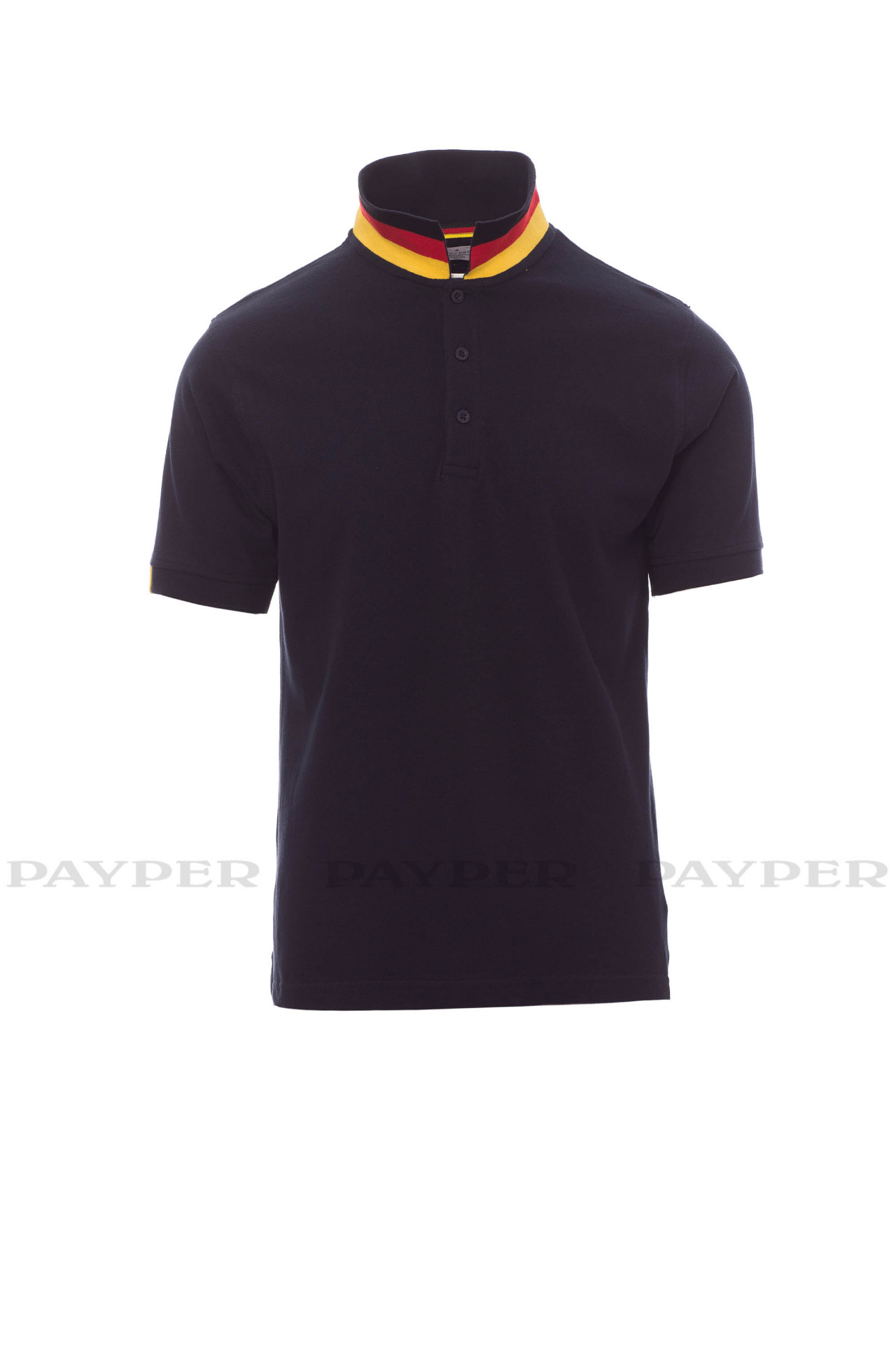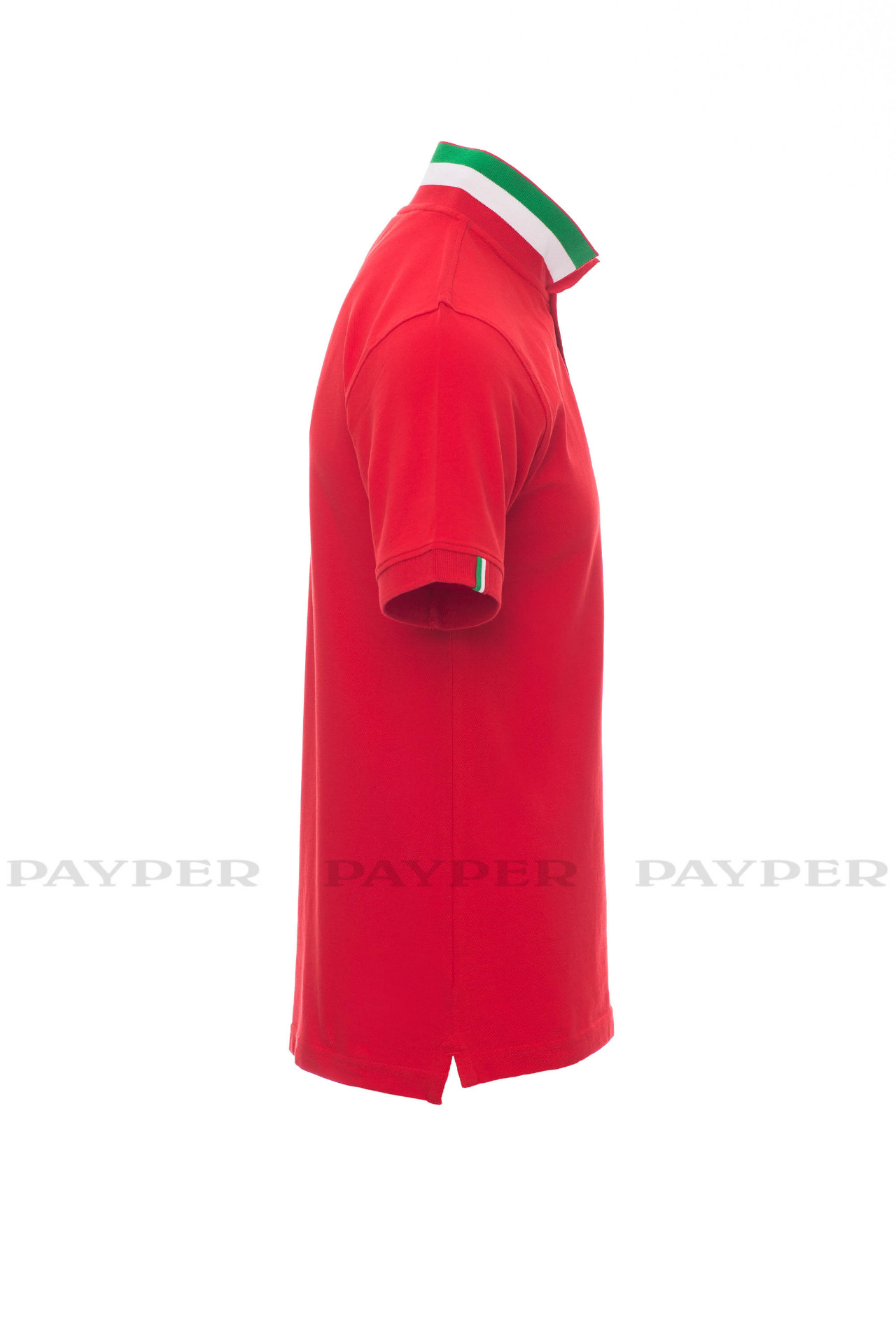 concealed collar stitching with jersey tape (colours of the flag), side