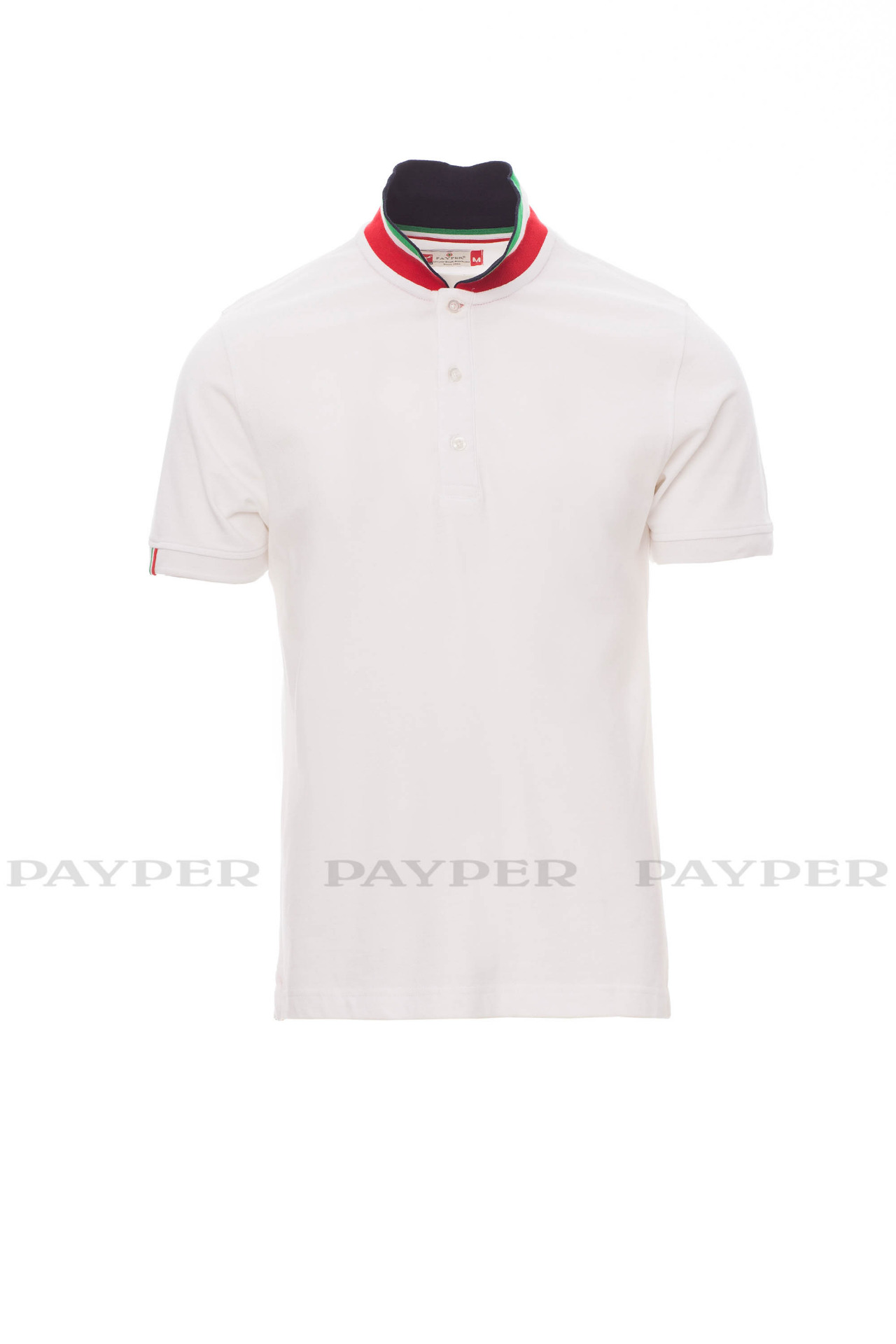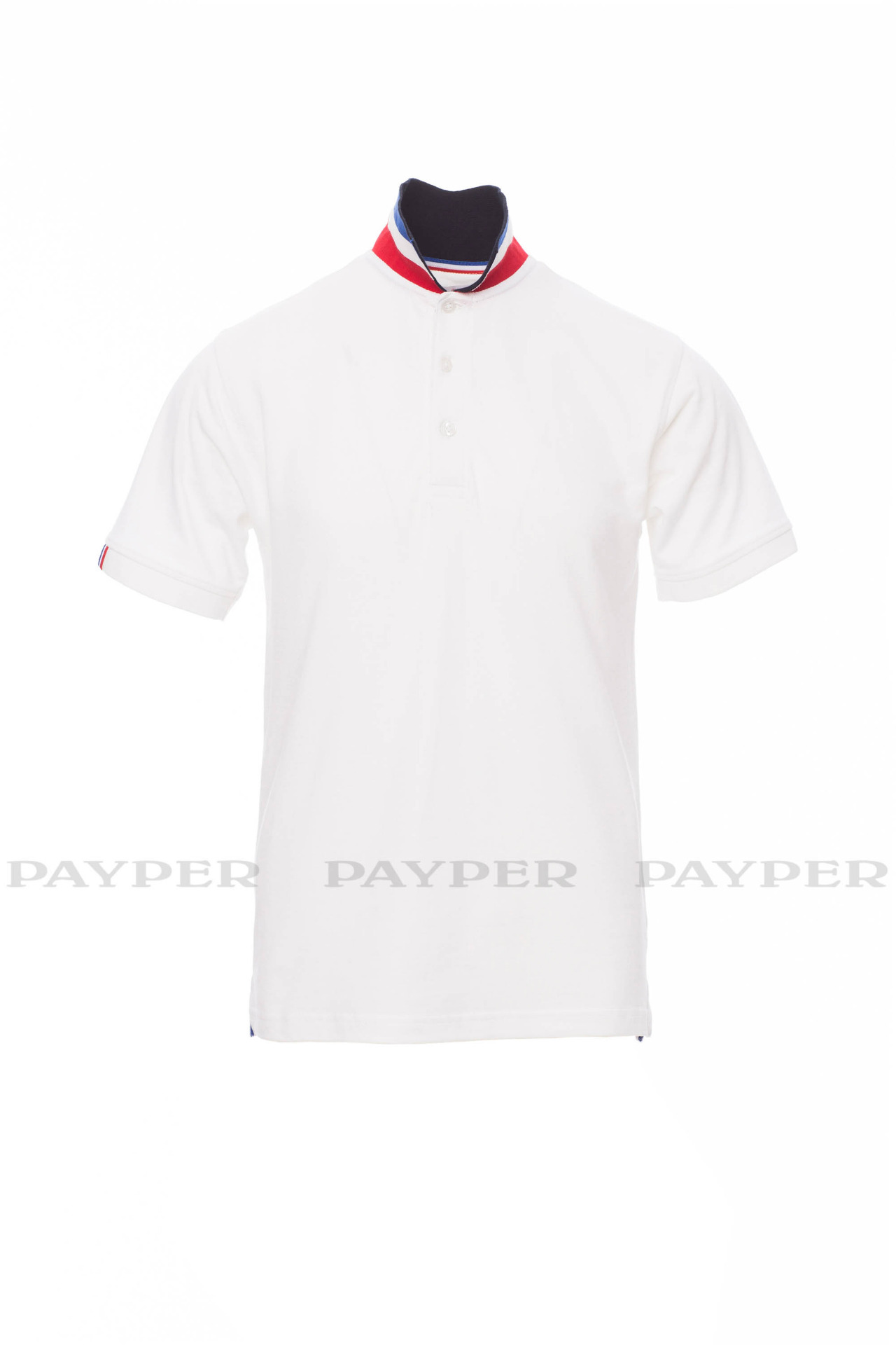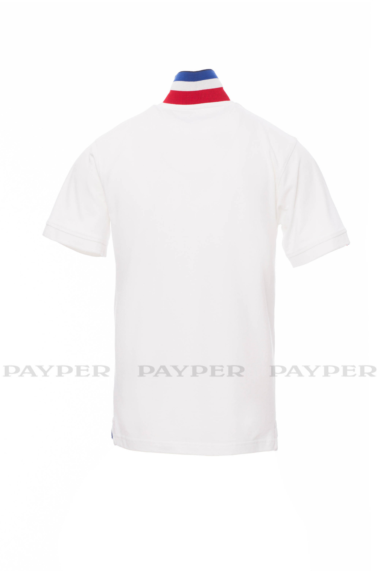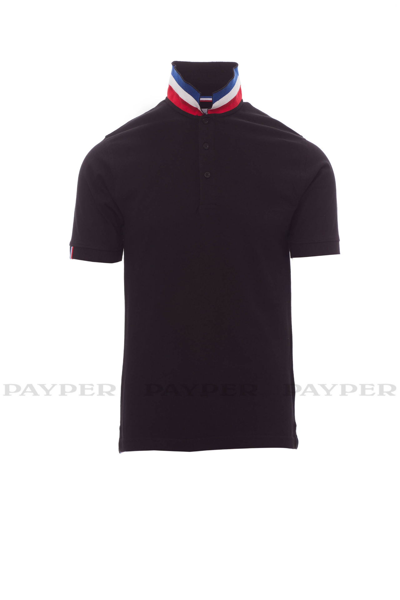 flag). Right sleeve edging with colour trim (same colour as collar), rib