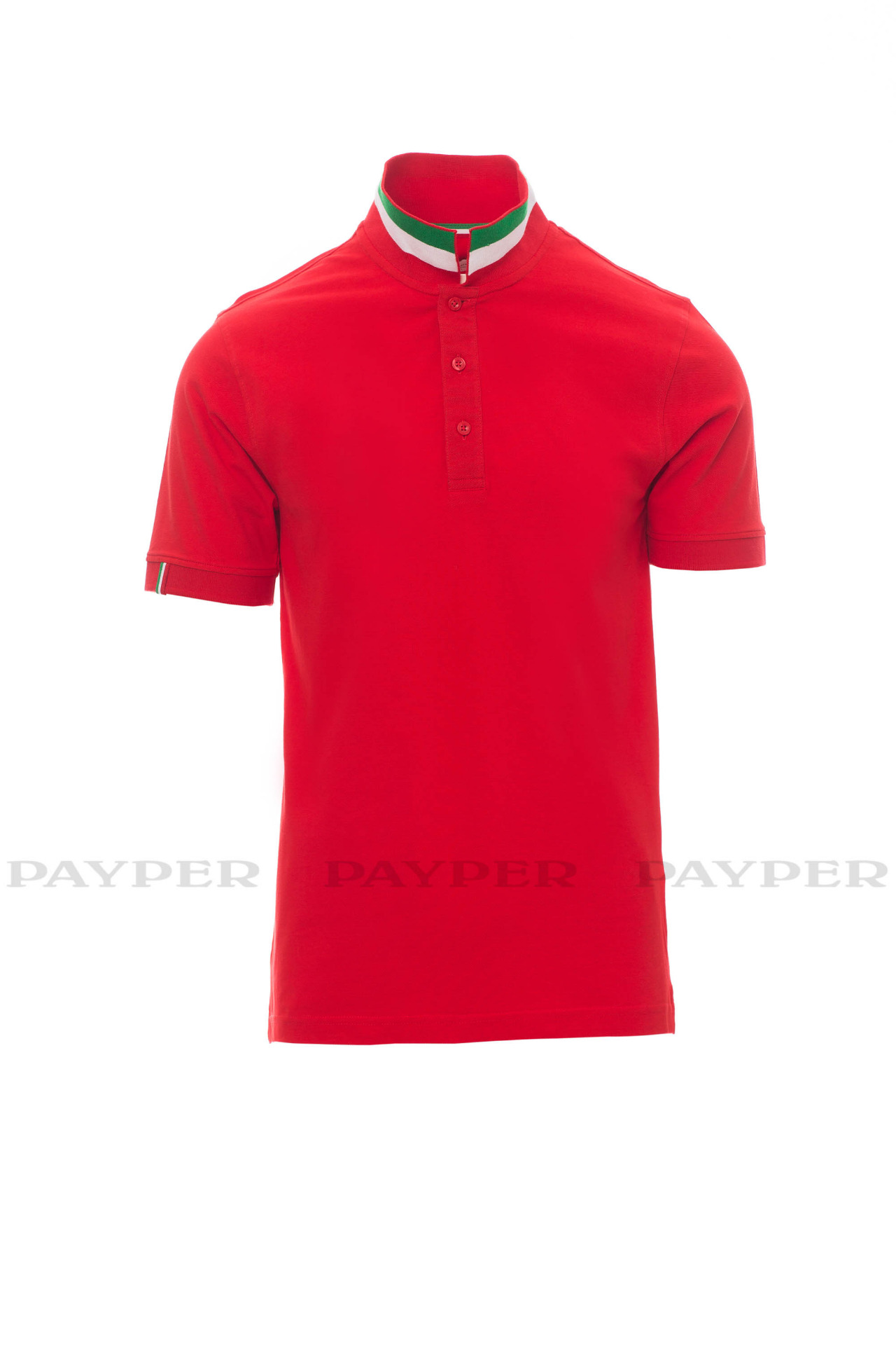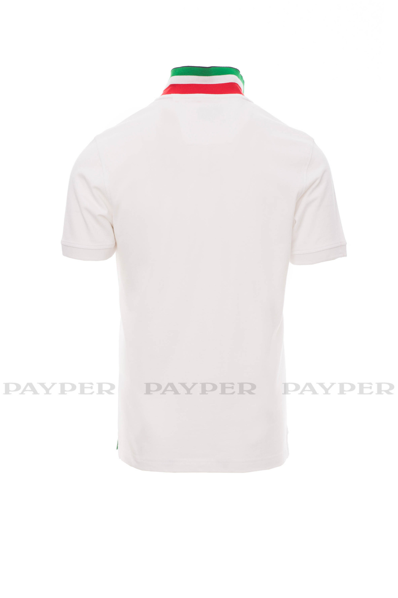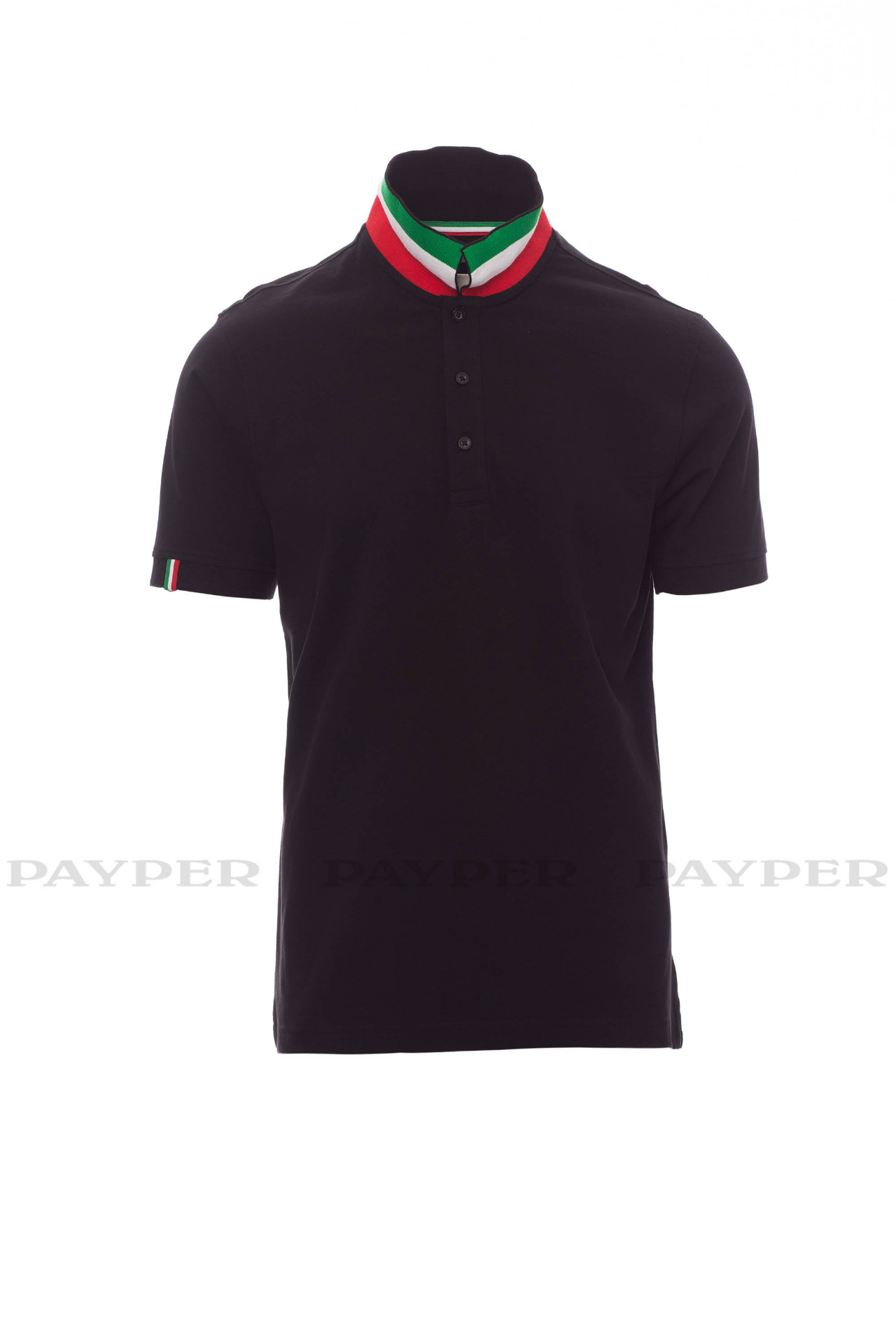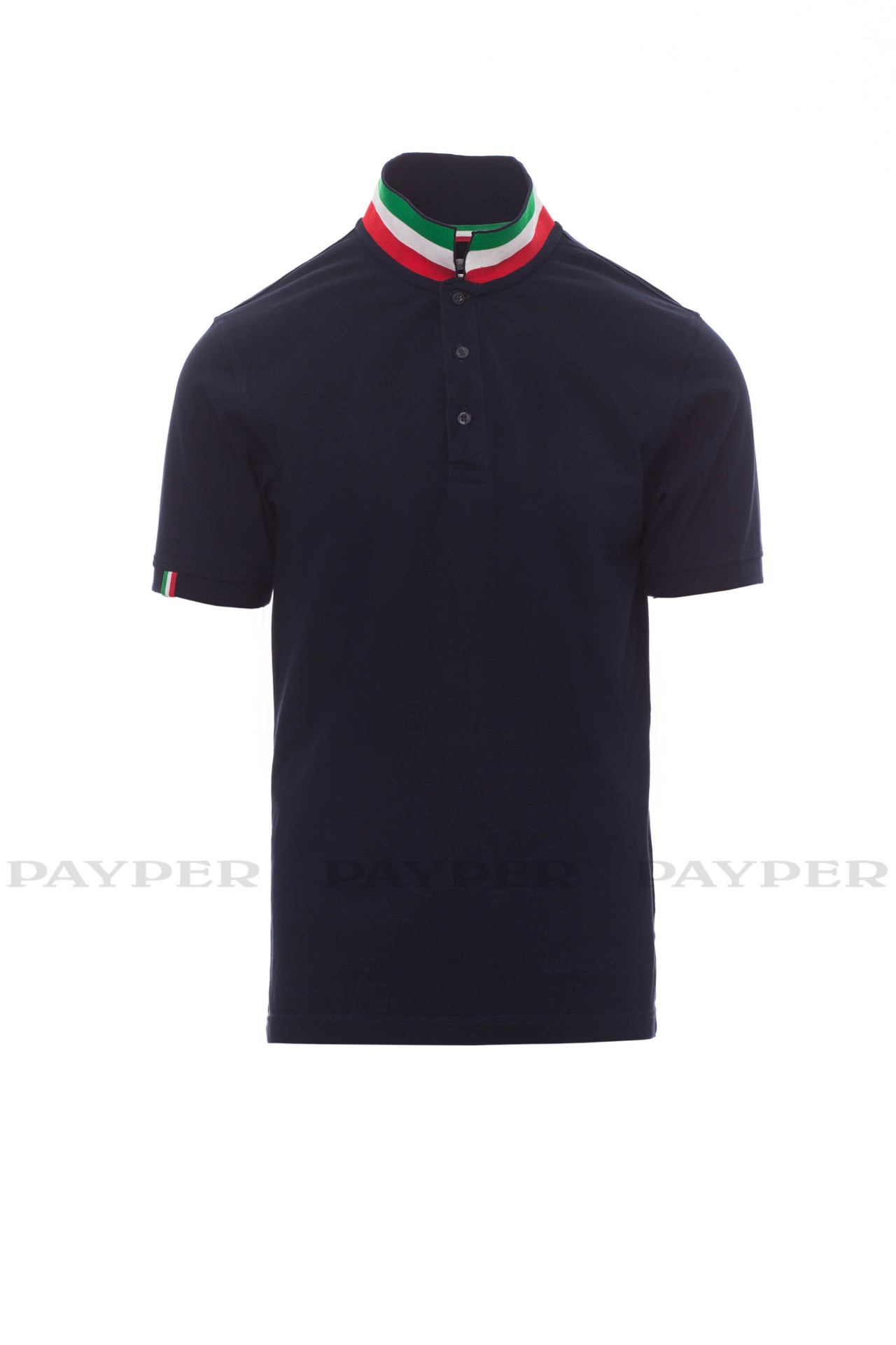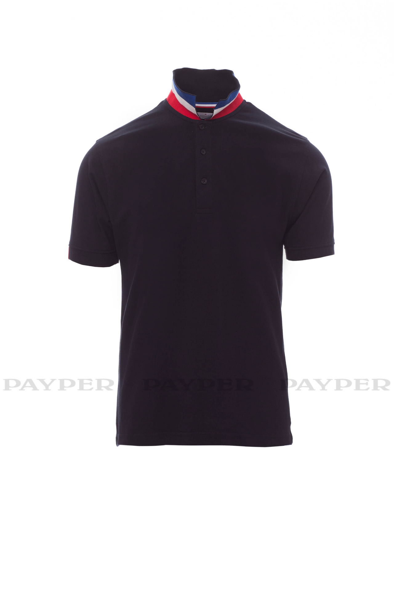 flag). Right sleeve edging with colour trim (same colour as collar), rib