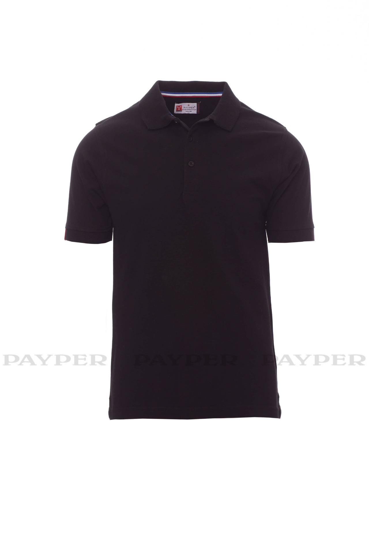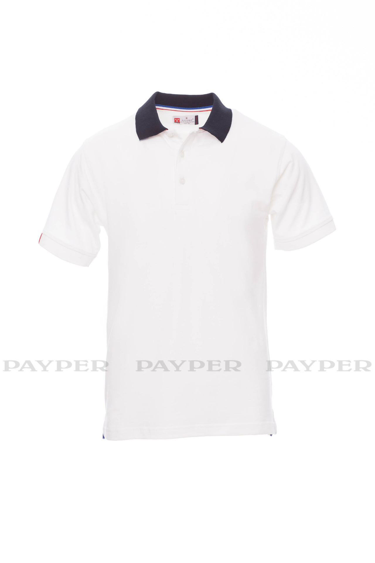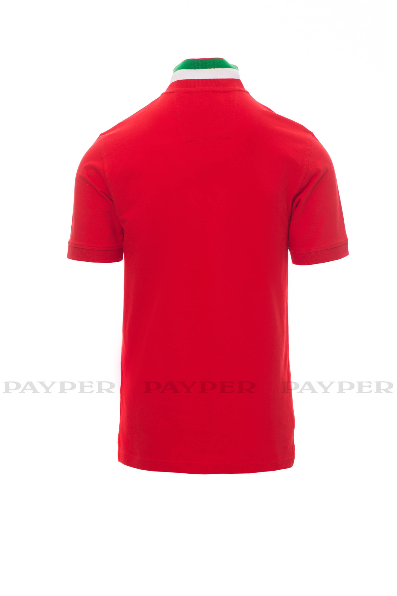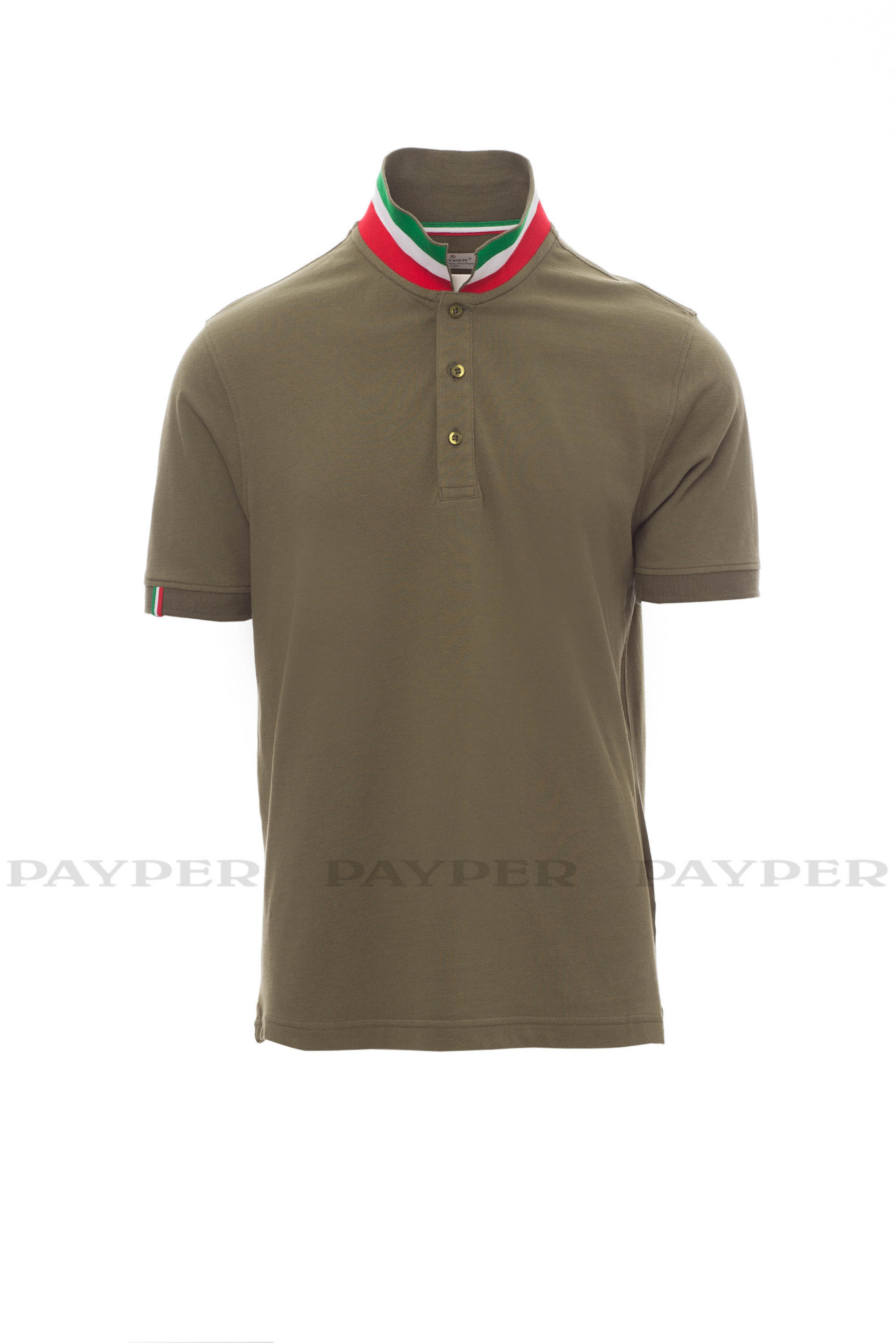 flag). Right sleeve edging with colour trim (same colour as collar), rib