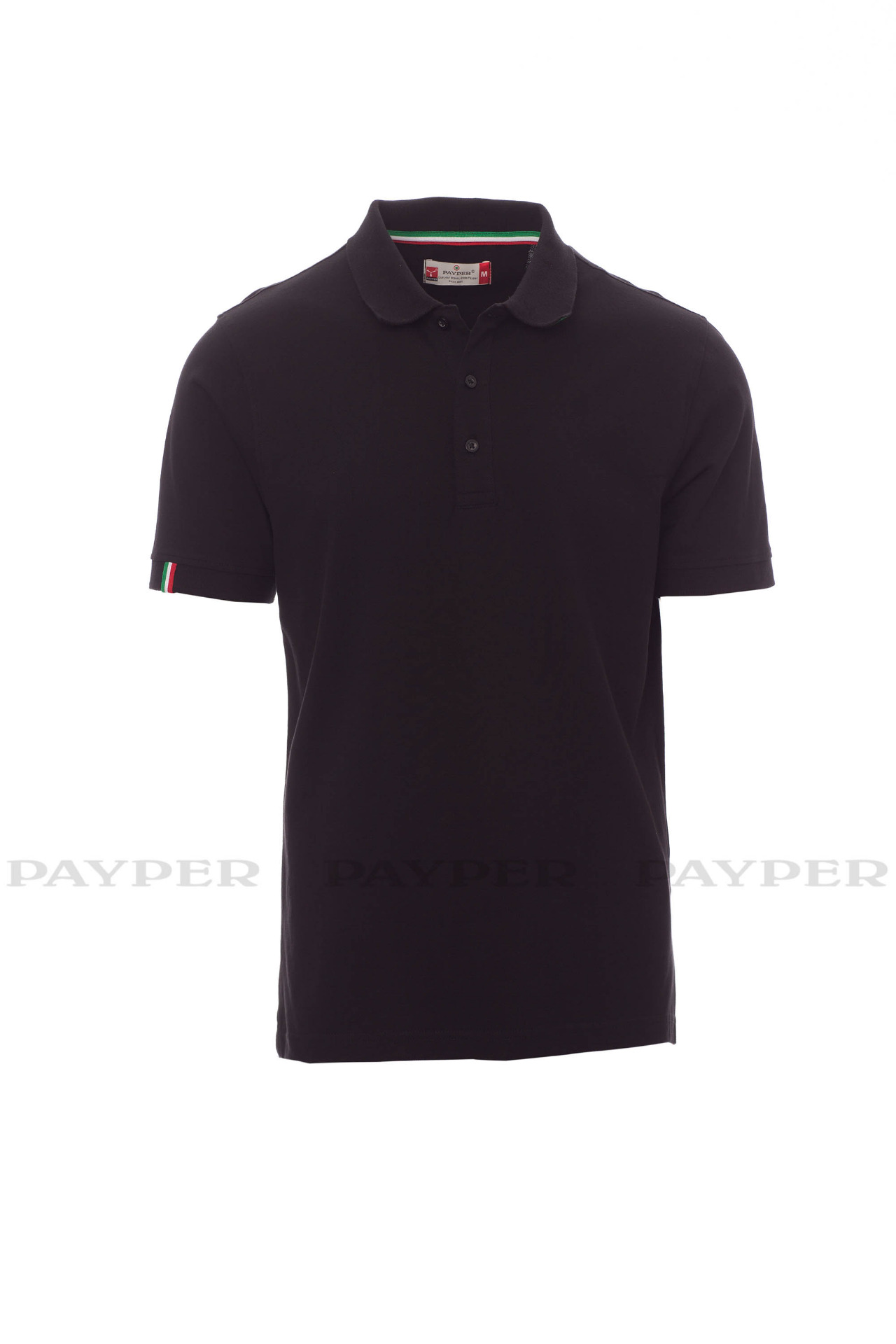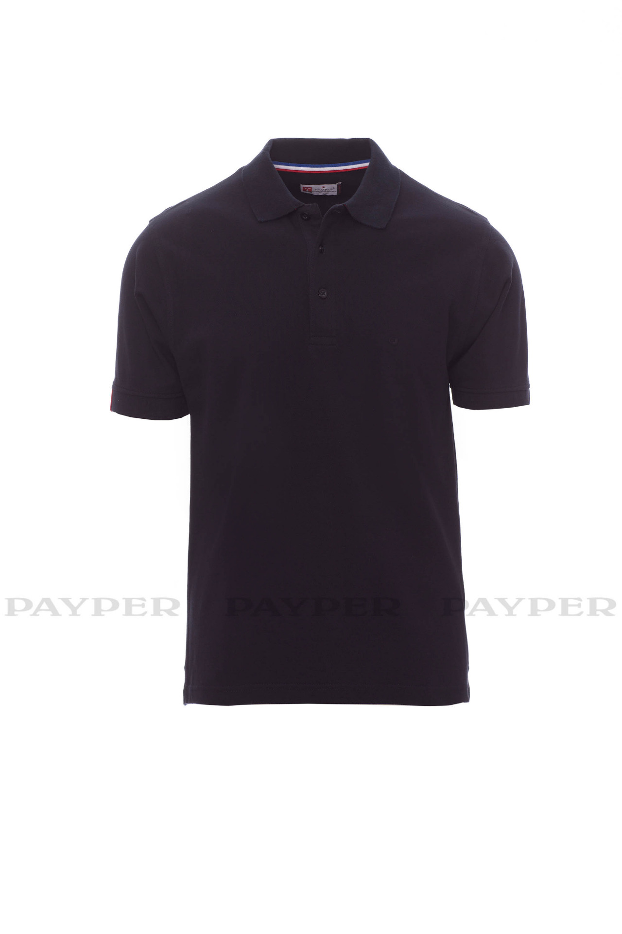 Men's short-sleeved polo shirt with 3, matching, mother-of-pearl effect