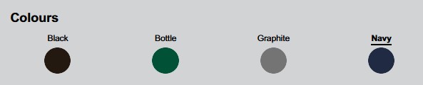 Colours: Black. Bottle, Graphite, Navy