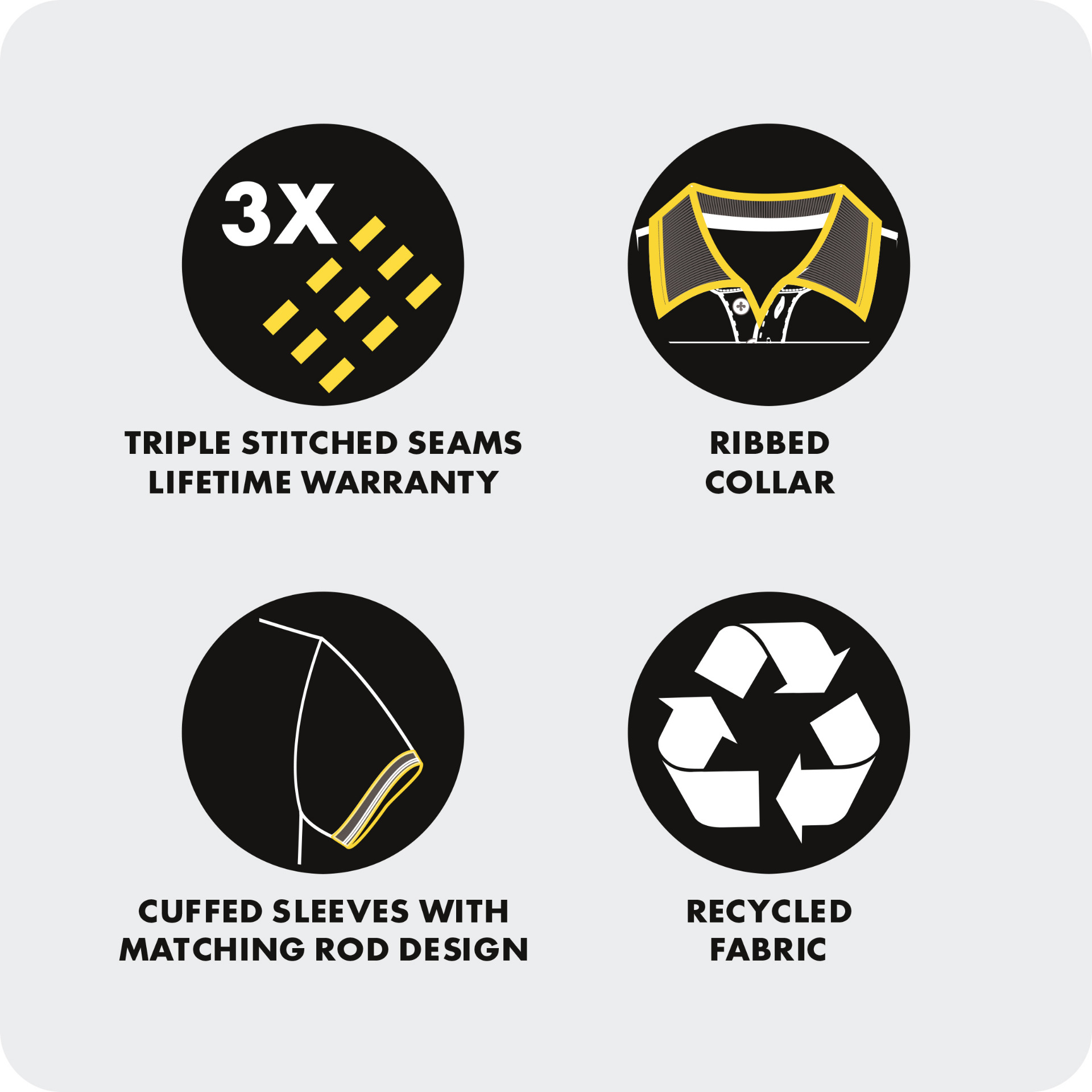 Top quality, premium weight poloshirt made using recycled material - Knitted collar with rod design and a padded, taped neckline for comfort - Half moon yoke at neck for increased strength - Cuffed sleeve with matching rod design - Self-coloured placket with matching pearlised buttons - Triple stitched on all main seams for ultimate strength