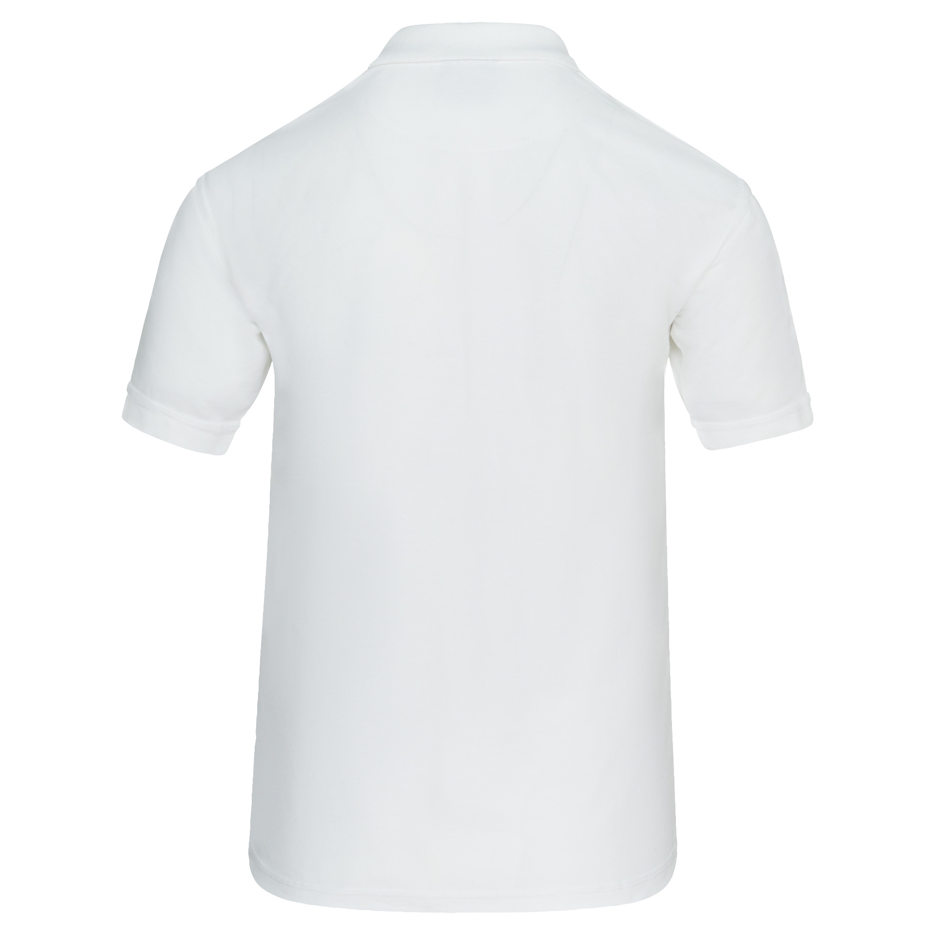 Top quality, classic poloshirt - Plain knitted collar and a padded, taped neckline for comfort - Half moon yoke at neck for increased strength - Hemmed sleeve ends - Self-coloured placket with matching pearlised buttons - Triple stitched on all main seams for ultimate strength