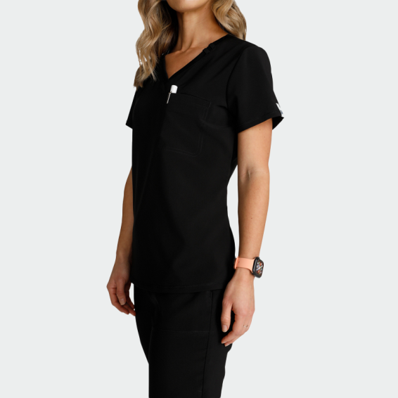 sleeves and plunging neck with one breast pocket. The medical tunic is