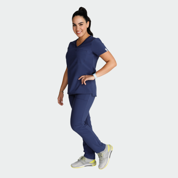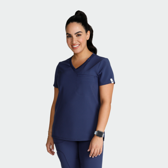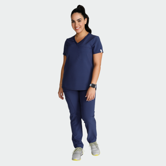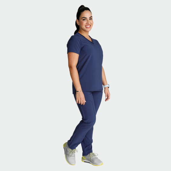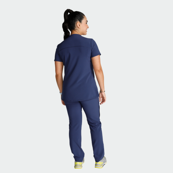 Scrub top CHEROKEE CK748A is an elegant, women's scrub top with a fitted silhouette and a modern look. Elegant fitted women's tunic with short sleeves and plunging neck with one breast pocket. The medical tunic is made of 90% polyester and 10% elastane with a density of 175g/m².