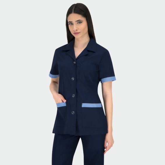 Scrub top GABI is a women's work scrub top suitable for use in healthcare, hospitality, and pharmacy. Slits on both sides of the tunic allow more freedom of movement and comfort. CL40°C color retention technology is also used, which guarantees bright and preserved colors after repeated washing.