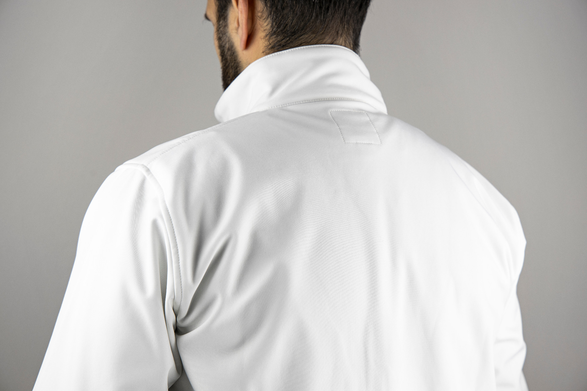 High collar - Zipper closure - One zipped chest pocket - Two lover zippered pockets - Elasticated cuffs - Fabric with mechanical stretch