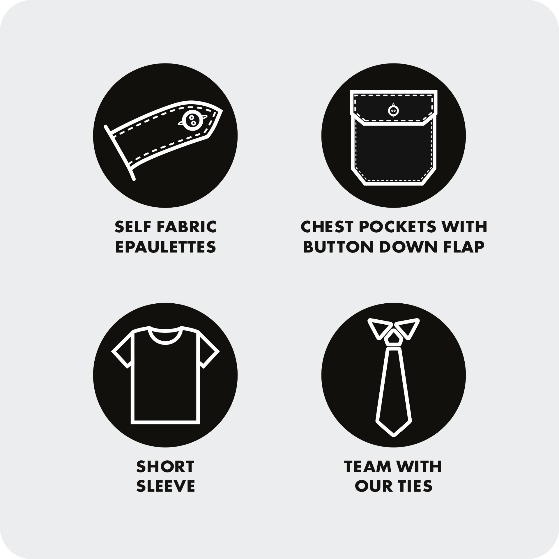 Essential weight pilot shirt - 2 chest pockets with button down flap - In widespread use throughout the security industry - Gives a professional appearance in environments such as shopping centres and high security reception areas - High quality, durable fabric - Team it with one of our ties to complete the look - Self-fabric epaulettes