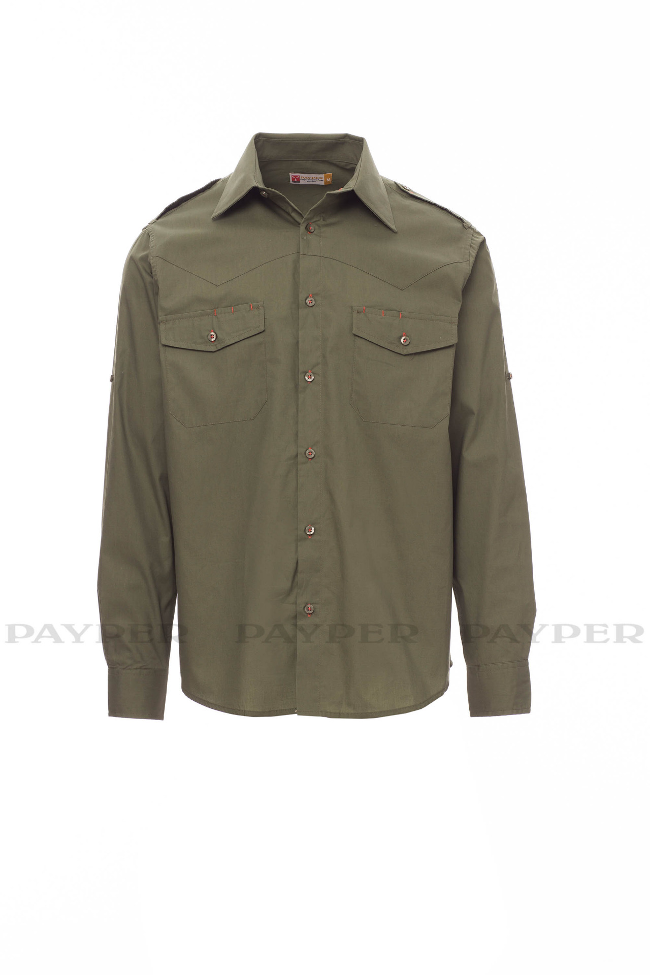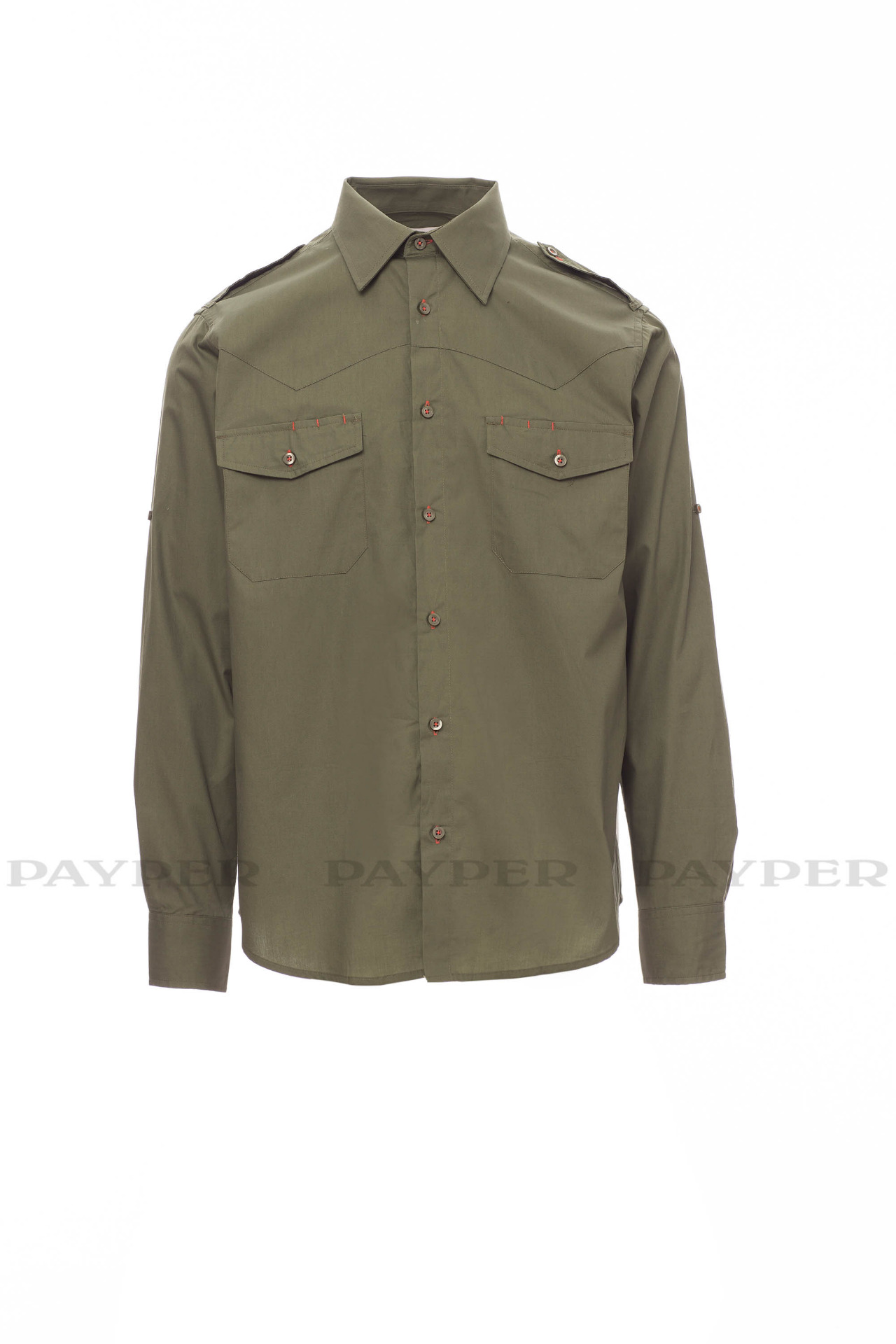 shoulder pads, two breast pockets with flap and pen-holding buttonholes,